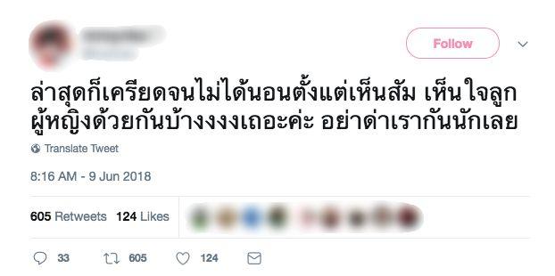 ล่าสุด มิ้ง หญิงสาวที่มีข่าวว่าเคยคบหากับหนุ่มกัปตัน ก็ได้ทวีตข้อความในทวิตเตอร์หลังจากที่เห็นการสัมภาษณ์ของกัปตัน และชาวโซเชียลฯ วิจารณ์อย่างหนักว่า “ล่าสุดก็เครียดจนไม่ได้นอนตั้งแต่เห็นสัม เห็นใจลูกผู้หญิงด้วยกันบ้างงงงเถอะค่ะ อย่าด่าเรากันนักเลย” และมีชาวทวิตเตอร์เข้ามาให้กำลังใจเป็นจำนวนมาก
