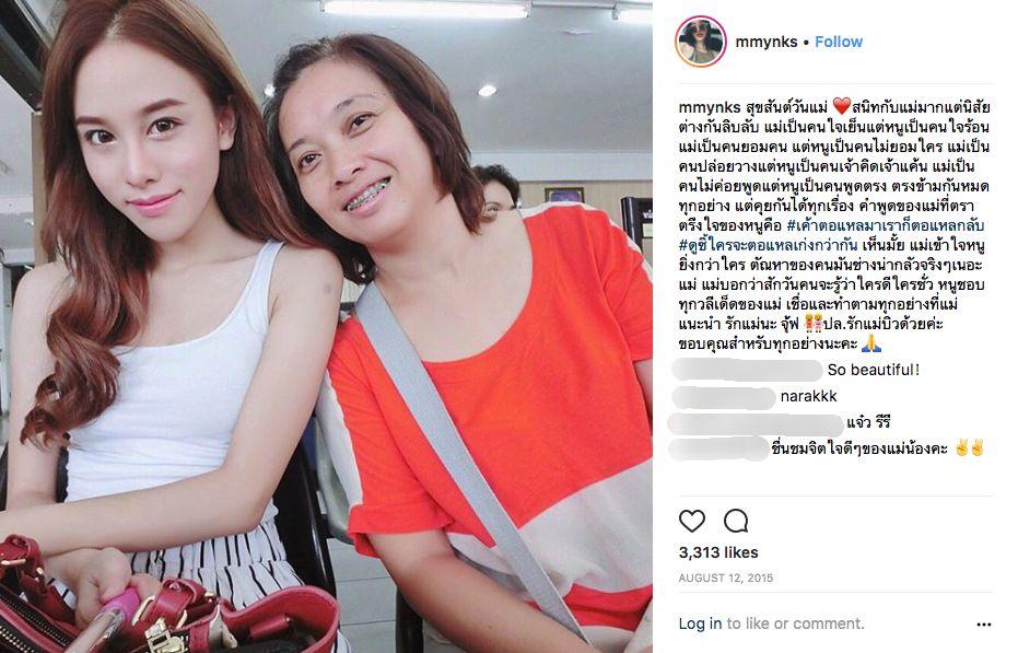 “สุขสันต์วันแม่ สนิทกับแม่มากแต่นิสัยต่างกันลิบลับ แม่เป็นคนใจเย็นแต่หนูเป็นคนใจร้อน แม่เป็นคนยอมคน แต่หนูเป็นคนไม่ยอมใคร แม่เป็นคนปล่อยวางแต่หนูเป็นคนเจ้าคิดเจ้าแค้น แม่เป็นคนไม่ค่อยพูดแต่หนูเป็นคนพูดตรง ตรงข้ามกันหมดทุกอย่าง แต่คุยกันได้ทุกเรื่อง คำพูดของแม่ที่ตราตรึงใจของหนูคือ #เค้าตอแหลมาเราก็ตอแหลกลับ#ดูซิ้ใครจะตอแหลเก่งกว่ากัน