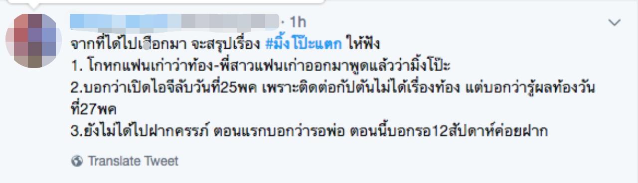 งานนี้ ยิ่ง มิ้ง ไม่ไปฝากครรภ์ หรือตรวจให้ชัดเจนโดยมีฝ่ายชายไปด้วย บอกเลย มิ้ง ยิ่งโดนขุดไม่จบไม่สิ้น พิจารณาดูแล้วหากอยากให้เรื่องจบ เห็นที มิ้ง ต้องรีบไปฝากครรภ์โดยมีฝ่ายชายไปด้วย จะได้สยบข่าวขุดที่ออกมาโจมตีไม่เลิก