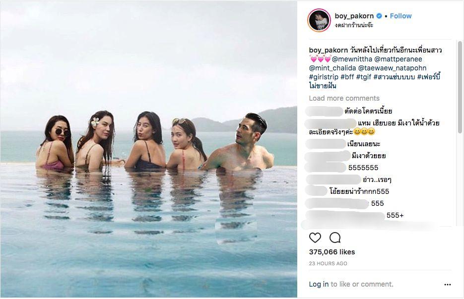 ส่วนพระเอกหนุ่มหนวดเกรียน บอย ปกรณ์ ฉัตรบริรักษ์ ก็นึกสนุกอยากมีส่วนร่วม เลยลงภาพตัดต่อตัวเองไปอยู่ข้างๆ 4 สาวในชุดว่ายน้ำด้วยเช่นกัน เรียกเสียงฮาจากบรรดาชาวโซเชียลฯ และเพื่อนดารากันเพียบ.