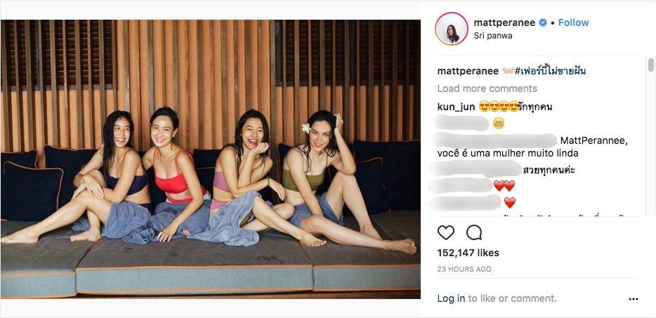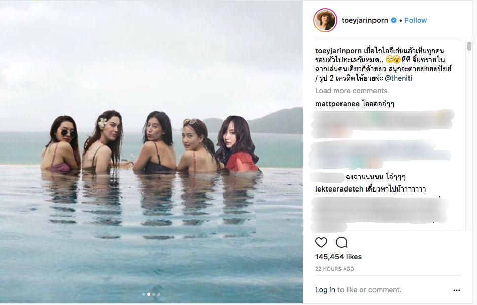 แต่ถึงแม้ทั้ง 4 สาวจะไม่ได้โชว์ความแซ่บแบบเต็มๆ แต่แฟนๆ ก็ออกปากชมว่าสวยและน่ารักทุกคน บางส่วนก็อยากรู้ว่าสาวๆ ทั้ง 4 คนใส่ชุดว่ายน้ำยี่ห้ออะไร และจากภาพสวยๆ ริมทะเลของ 4 สาว ทำเอานางเอกสาวร่างเล็ก เต้ย จรินทร์พร จุนเกียรติ ก็แอบบ่นอยากไปบ้าง และลงภาพตัดต่อตัวเองอยู่กับ 4 สาวลงไปในไอจี งานนี้หวานใจอย่างพระเอกหนุ่มตี๋ อาเล็ก ธีรเดช เมธาวรายุทธ เลยออกปากว่า "เดี๋ยวพาไปน้าาาาาา" แฟนๆ เลยแซวในความหวานของ อาเล็ก-เต้ย กันยกใหญ่