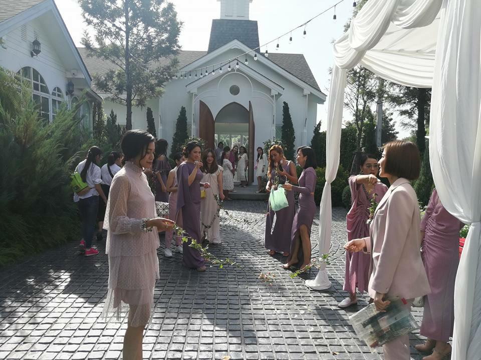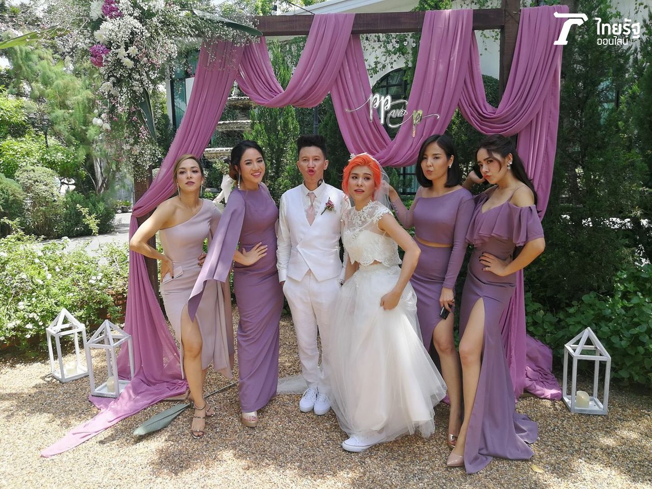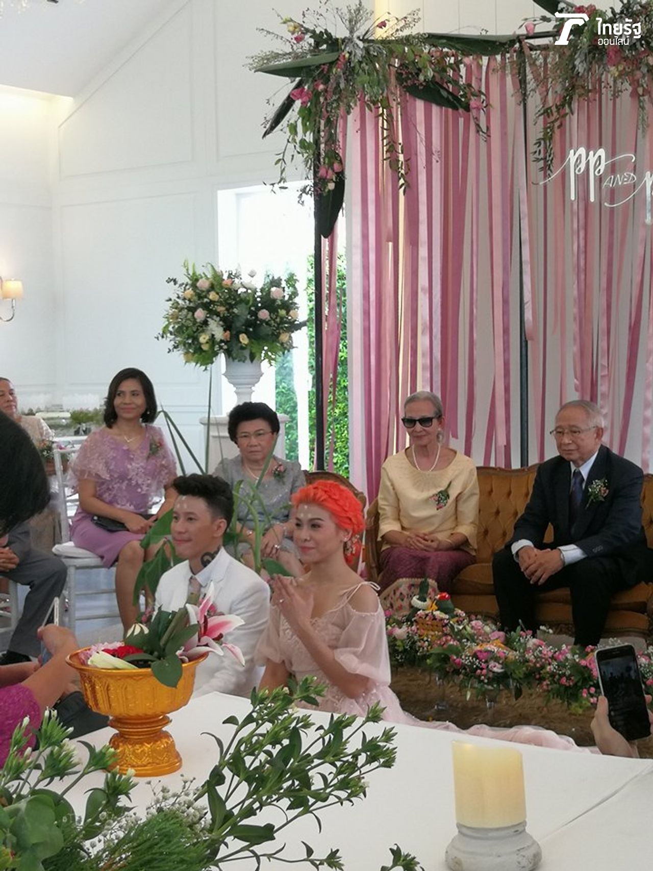 งานนี้เจ้าสาวอย่างพะแพง มาในชุดเจ้าสาวสีเบจ ก่อนจะเปลี่ยนเป็นชุดเจ้าสาวสีขาวสวยหวาน แต่ที่สะดุดตาสุดๆ เห็นจะเป็นสีผมสีส้มของสาวพะแพง ที่ดูเปรี้ยวจี๊ดสะดุดตามากๆ ฝั่งเจ้าบ่าวอย่างหนุ่มแป๊บ สวมชุดเจ้าบ่าวสีขาวดูเรียบสบายตา โดยมีเพื่อนสาวจากเวทีเอเอฟ ซาร่า โฮเลอร์, ปุยฝ้าย ณัฏฐพัชร์ เป็นเพื่อนเจ้าสาว นอกจากนี้ ยังมีคนบันเทิงมาร่วมแสดงความยินดี อาทิ มิ้น มิณฑิตา, วง Retrospect, ซีแนม สุนทร, นิวเคลียร์ หรรษา, ชัช บอดี้สแลม, ปั๊ป โปเตโต้, ใบเตย สุวพิชญ์, ติ๊นา ศุภนาฏ ฯลฯ