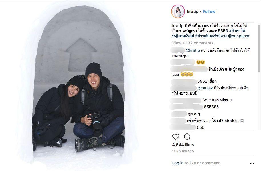 งานนี้สาวกระติ๊บไม่นิ่งเฉย ขอเคลียร์ปมถูกโยงดราม่าเรื่องดังกล่าวด้วยการโพสต์ภาพคู่แฟนหนุ่มพร้อมทั้งเขียนแคปชั่นสุดฮาว่า “ถึงชื่อเป็นภาชนะใส่ข้าว แต่กอ ไก่ไม่ใช่อักษร พยัญชนะใส่ข้าวนะคะ 5555 #ข้าหาใช่หญิงคนนั้นไม่ #ข้าจะฟ้องเจ้าหลวง @punpunsr” และมีแฟนๆ รวมถึงเพื่อนๆ โพสต์ข้อความให้กำลังใจกันหลายคน