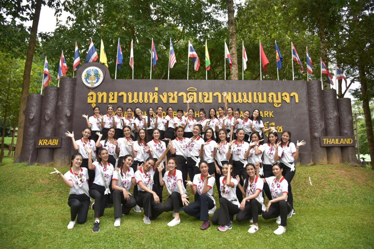 โดยเหล่าสาวงามได้เดินทางออกจากโรงแรมกระบี่รีสอร์ท อ่าวนาง ไปยังเขตอุทยานแห่งชาติเขาพนมเบญจา ตำบลทับปริก อำเภอเขาพนม จ.กระบี่ ในเวลา 08.00 น. โดยมีนายปภาวิน หยังหลัง หัวหน้าอุทยานแห่งชาติเขาพนมเบญจา ให้การต้อนรับ