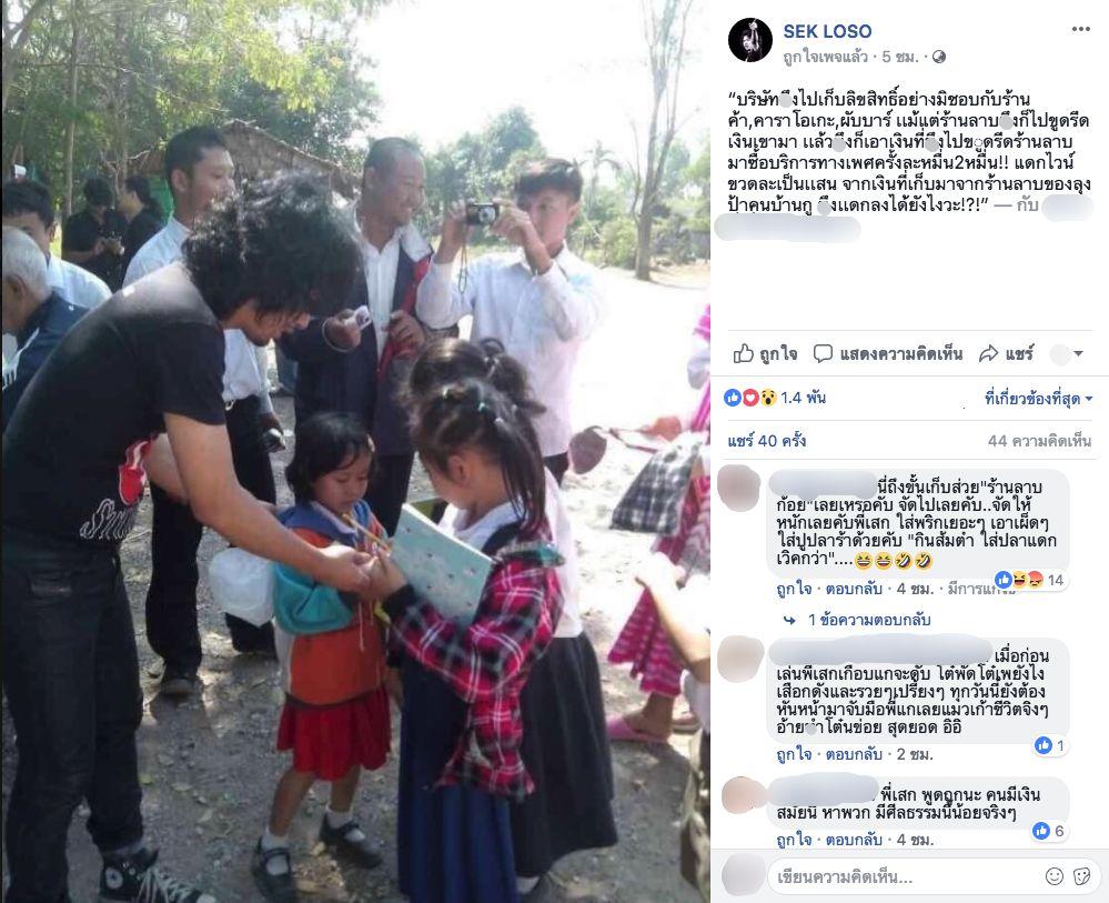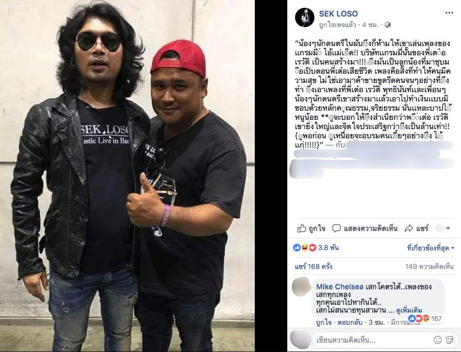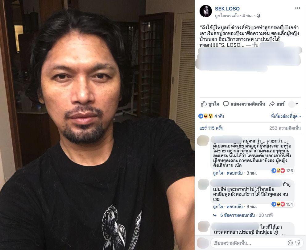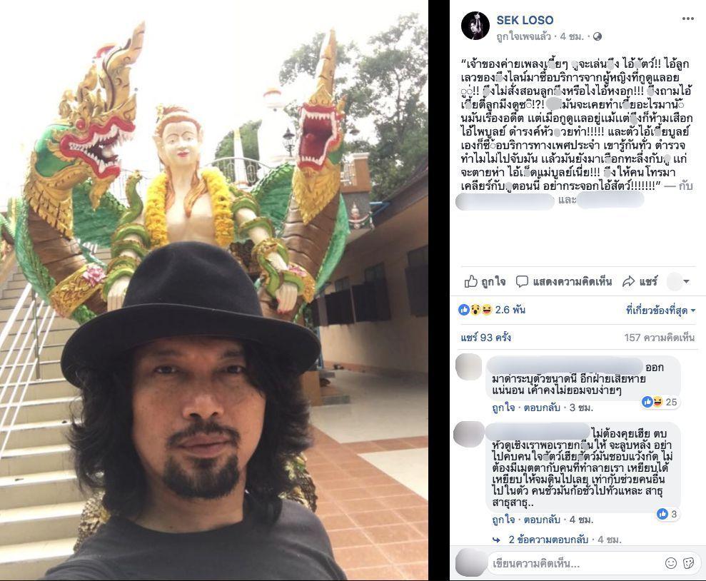 ทำเอาขาเผือกโซเชียลฯ มุงกันแทบไม่ทันเลยจ้า!! เมื่อร็อกเกอร์ดัง เสก โลโซ ของขึ้นอีกแล้ว!! โพสต์ด่าแร๊งงงส์!! ในแฟนเพจ Sek Loso แต่งานนี้คู่กรณีเป็น อากู๋ ไพบูลย์ ดำรงชัยธรรม บิ๊กบอสค่ายเพลงยักษ์ใหญ่แกรมมี่ โดยหาว่าลูกชายของเจ้าของค่ายเพลงดังแชตมาถาม อีฟ อภิสร์ญา พัฒนวรทรัพย์ แฟนสาวของเสกเรื่องขายตัว ทำเอาร็อกเกอร์ดังออกอาการเดือดสุดๆ