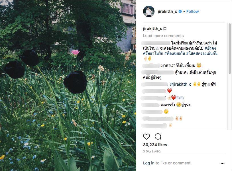 “ไม่อยากให้โยงเท่าไหร่ มันเป็นฟีลของผมเองที่อยากจะลงรูปวิวบ้างเฉยๆ ครับ (แต่ก็มาลงในช่วงที่จ๋ามีข่าวพอดี?) ก็ลงไปงั้นๆ แหละครับ ไม่มีอะไร จริงๆ ดอกไม้มันเป็นสีดำอยู่แล้ว บังเอิญว่าผมไปที่อังกฤษมาแล้วไปเจอดอกไม้อันนี้มันแปลกดีก็เลยถ่ายเก็บไว้ แต่ไม่รู้ว่าจะลงตอนไหนดีครับ พอไปย้อนดูแล้วเห็นดอกไม้มันสวยน่าลงก็เลยลง”