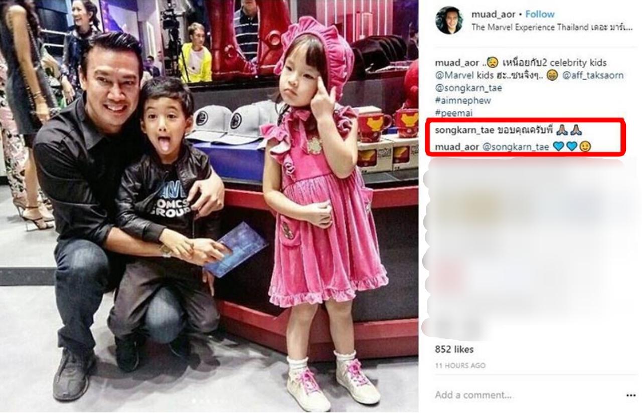 จึงเป็นโอกาสดีที่หมวดอ๋อจะได้แชะรูปกับน้องปีใหม่ และเจ้าตัวก็ได้โพสต์รูปนี้ลงอินสตาแกรม โดยเขียนแคปชั่นว่า "เหนื่อยกับ 2 celebrity kids ซนจริงๆ" พร้อมกับติดแท็กถึงแอฟและสงกรานต์ อีกด้วย ซึ่งด้านสงกรานต์เองก็ได้เข้ามาขอบคุณหมวดอ๋อด้วยความจริงใจ และหมวดอ๋อก็ส่งรูปหัวใจกลับไป