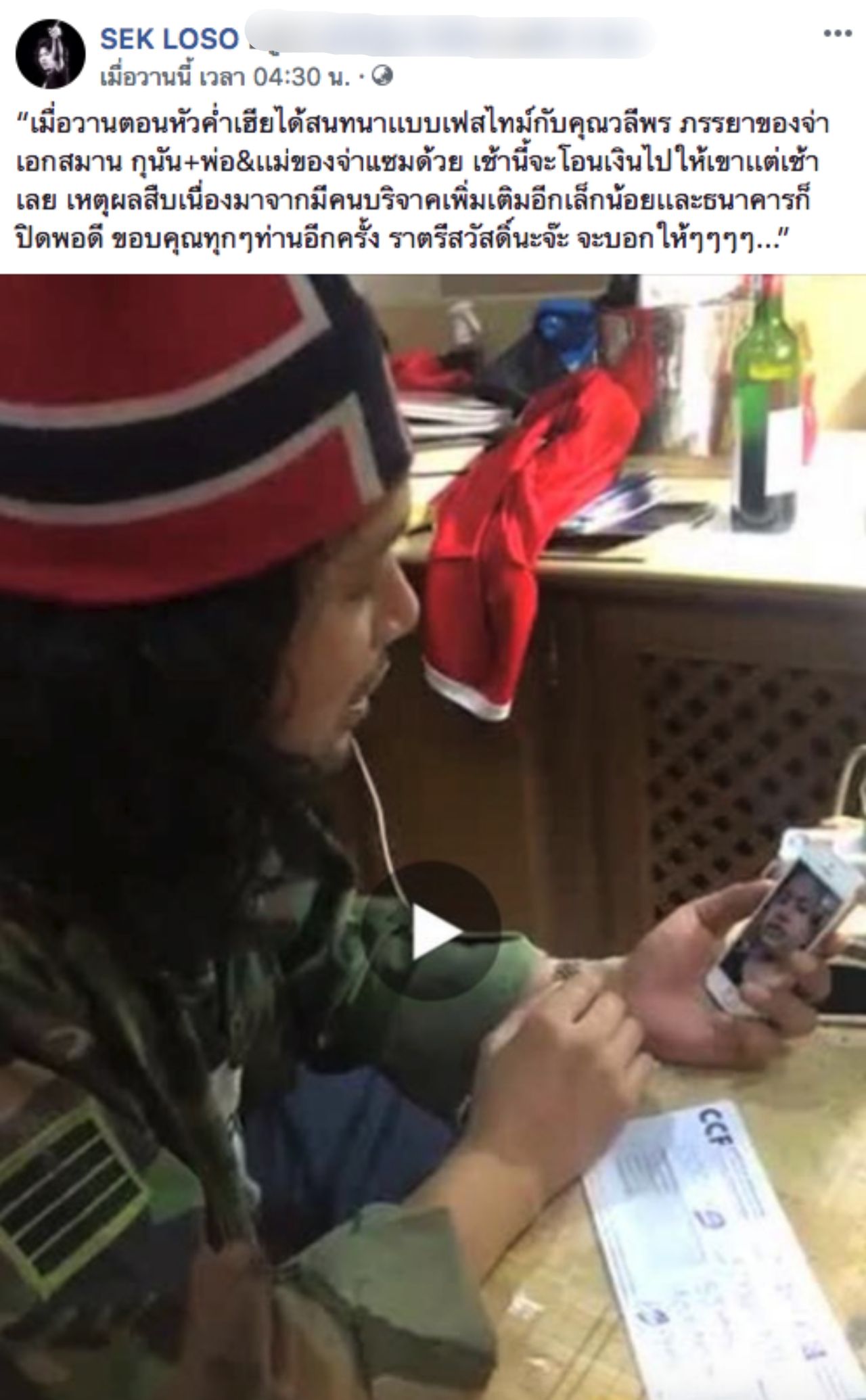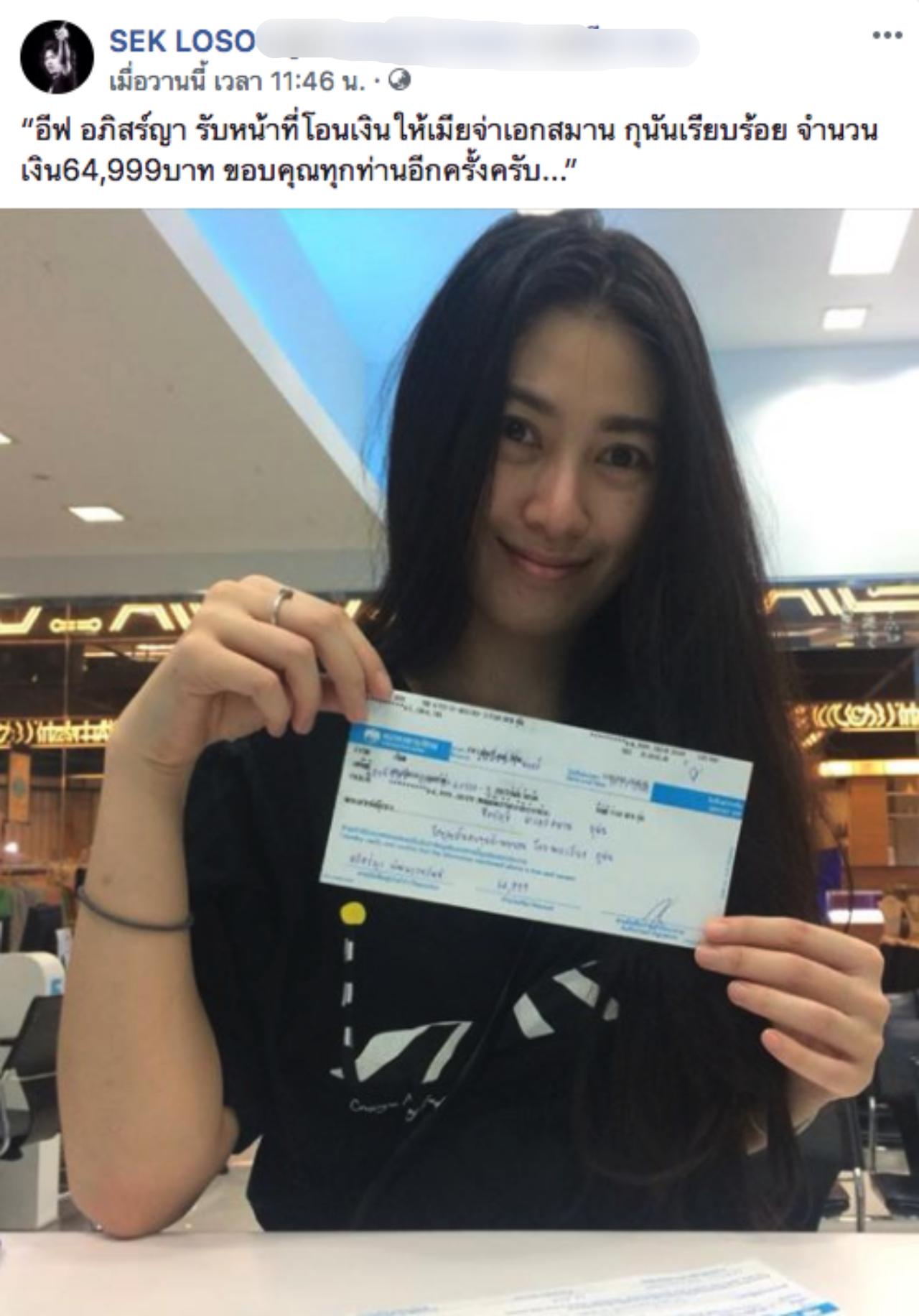 ซึ่งเงินก้อนนี้เป็นเงินที่ได้จากการไลฟ์สดของเสกถึงแฟนคลับ และแฟนคลับก็ได้โอนเงินเข้ามาช่วยเหลือกันเป็นจำนวนมาก ซึ่งแฟนคลับของเสกเอง ก็ได้เข้ามาคอมเมนต์ชื่นชมการกระทำครั้งนี้ ซึ่งเป็นอีกมุมหนึ่งที่ดีๆ ของพี่เสก ที่แฟนคลับน่าจะเห็นกันมาตลอด