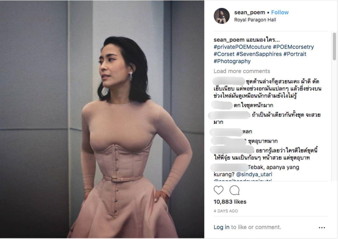 แต่ชุดก็สวยดีในความรู้สึกของเรา เรารู้สึกว่ามันเป็นชุดที่เน้นสรีระของผู้หญิงค่ะ จุ๋ยก็ให้เกียรติ จุ๋ยรู้สึกว่าการวิจารณ์มันง่าย แต่คนที่ตั้งใจทำและลงมือทำมันยาก เขาคงตั้งใจทำเป็นอย่างดี และพี่เขาดูแลเราดีมากๆ ดังนั้นไม่มีเหตุผลอะไรที่จะต้องเสียใจค่ะ ถามว่าเจอแบบนี้แล้วนอยด์มั้ย ไม่ค่ะ เพราะว่าในส่วนตัวถ้าเจอคนที่เจอกันตัวต่อตัว คนที่ดูแฟชั่นกันอยู่แล้ว ทุกคนก็บอกว่าสวยดีค่ะ”