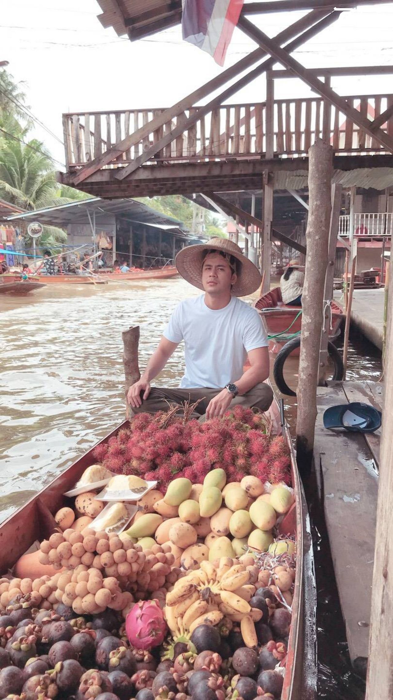 กลับบ้านคราวนี้ นิวส์ใช้เวลาว่างได้อย่างคุ้มค่าน่ารัวไลค์ให้ ไปเช่าเรือผลไม้ของเพื่อนแม่ ค่าเช่าจ่ายไป 350 บาท พายไปเรื่อยๆ ออกขายตั้งแต่เช้าจนถึงเที่ยง ถ้าขายได้กำไรก็หักเก็บเอาไว้ พายขายไปไม่นานมีคนอุดหนุนเพียบ แหมๆ ก็ทั้งหล่อล่ำ ผลไม้ก็น่ากิน พ่อค้าก็น่ากิน แบบนี้เห็นทีต้องเหมาหมดลำ เท่าไรดีจ๊ะ วานบอกไวๆ.