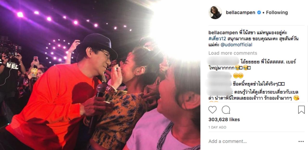 เมื่อ โน้ต ได้ลงรูปนี้ในอินสตาแกรม ก็มีแฟนๆ ได้เข้าไปคอมเมนต์แซวกันเป็นจำนวนมาก บ้างก็บอกว่า ให้ระวัง เวียร์ ด้วย ทำแบบนี้เค้าก็หึงหรอก หรือแซวอีกว่า เหมือน เบลล่า จะเกร็งๆ รังเกียจนิดๆ แต่ก็มีแฟนคลับกลุ่มหนึ่งที่ไม่เห็นด้วยกับการกระทำแบบนี้ของ โน้ต อุดม โดยบอกว่า ให้เกรงใจคุณแม่ของเบลล่าที่นั่งอยู่ข้างๆ บ้าง อีกอย่างตัวเบลล่าเองก็มีหวานใจเป็นตัวเป็นตนแล้ว ถ้า เวียร์ ศุกลวัฒน์ มาเห็นแบบนี้ จะว่ายังไง...