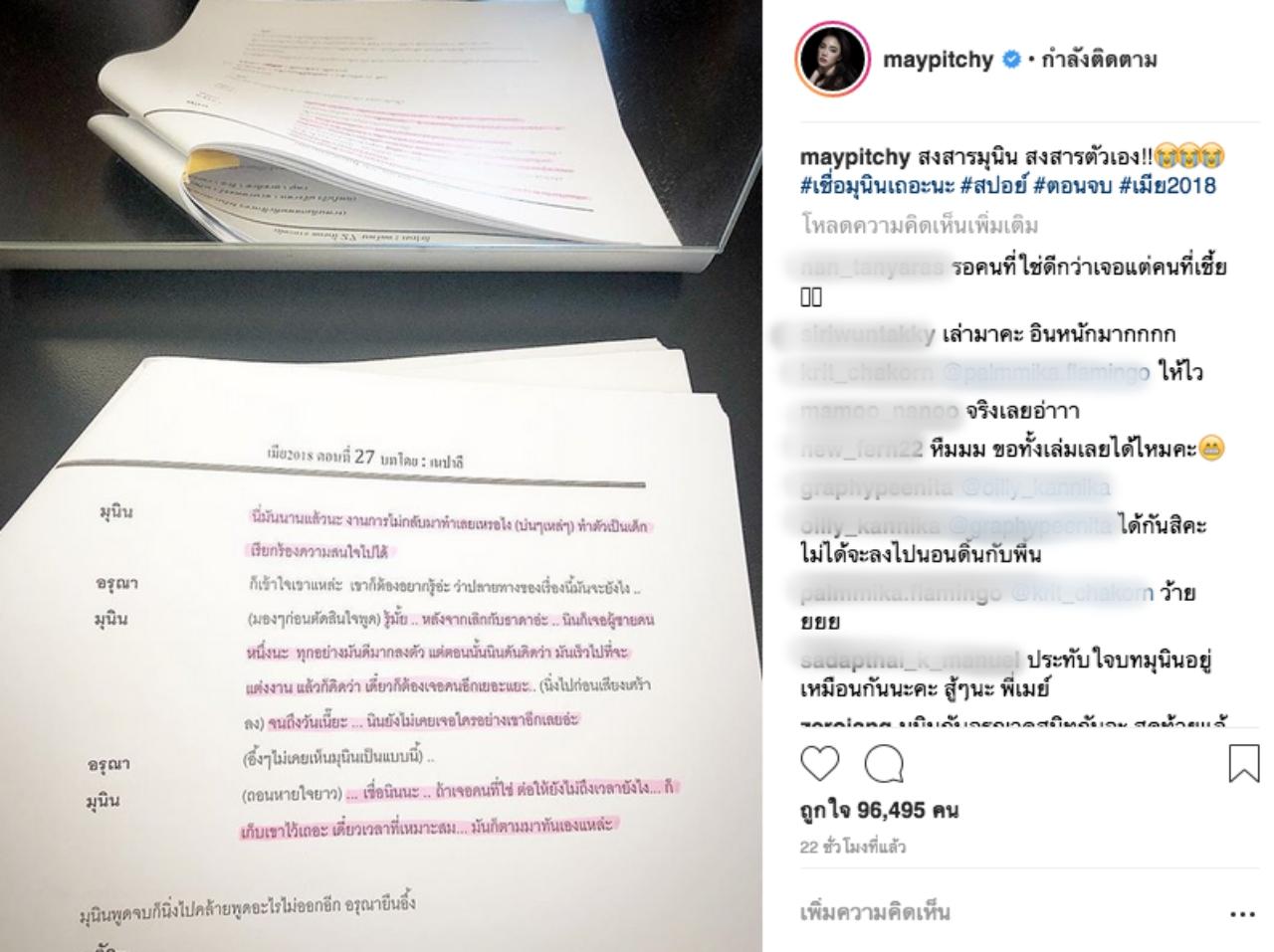 หลังจากที่สาวเมย์โพสต์บทละครลงไปเพื่อเป็นการกระตุ้นต่อมอยากดู ก็ทำให้แฟนละครทั้งหลายอยากจะรู้ตอนจบ และฉากจบของความรักครั้งนี้ของบอสศวินและอรุณากันเพียบ