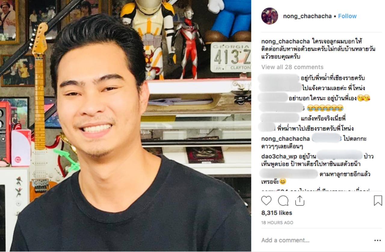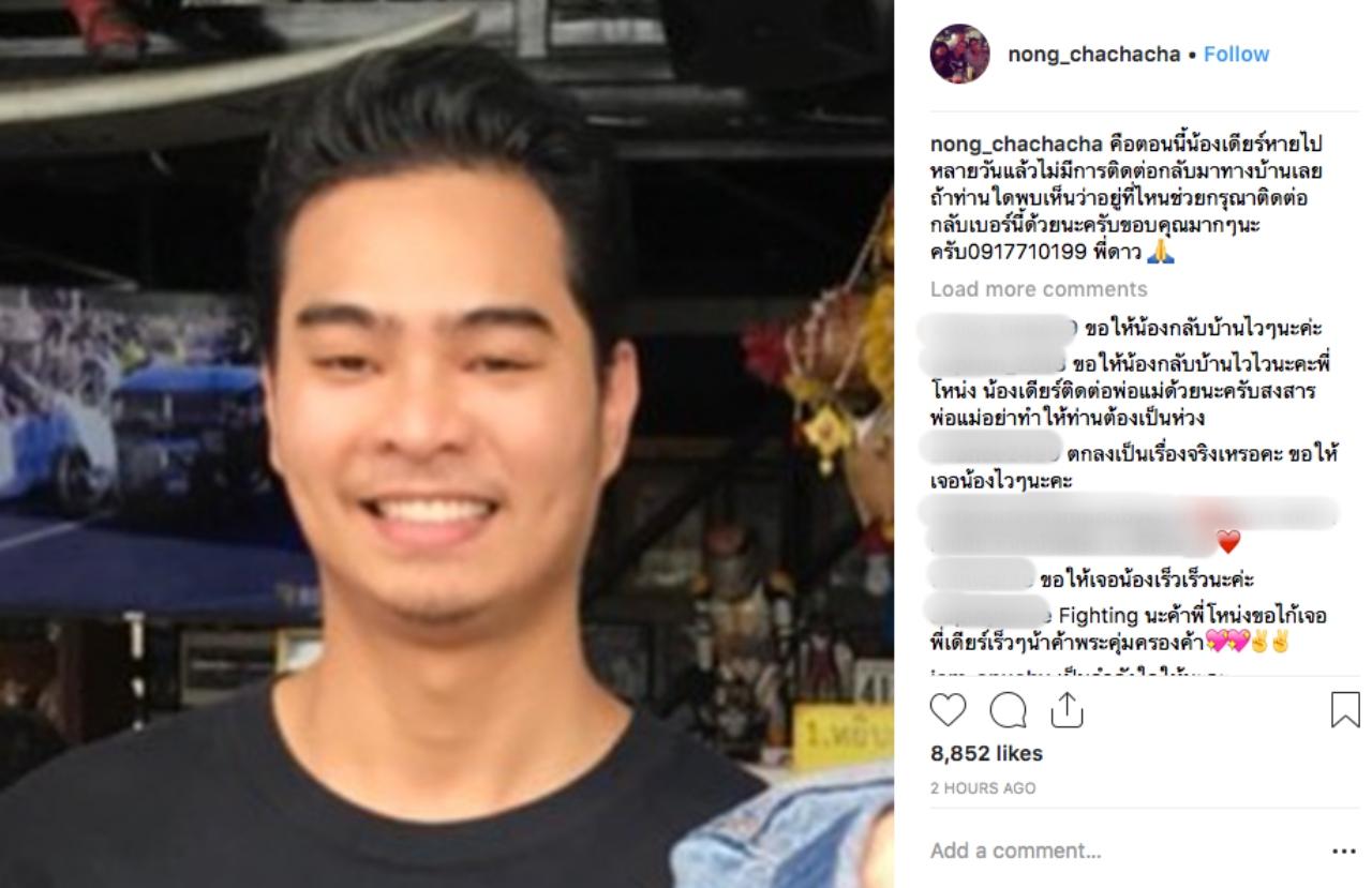 โดย โหน่ง เผยผ่านอินสตาแกรมว่า "คือตอนนี้น้องเดียร์หายไปหลายวันแล้วไม่มีการติดต่อกลับมาทางบ้านเลย ถ้าท่านใดพบเห็นว่าอยู่ที่ไหนช่วยกรุณาติดต่อกลับเบอร์นี้ด้วยนะครับ ขอบคุณมากๆนะครับ" พร้อมให้เบอร์ติดต่อกลับ และยังโพสต์ว่า "ใครเจอลูกผมบอกให้ติดต่อกลับหาพ่อด้วยนะครับ ไม่กลับบ้านหลายวันแว้วขอบคุณครับ"