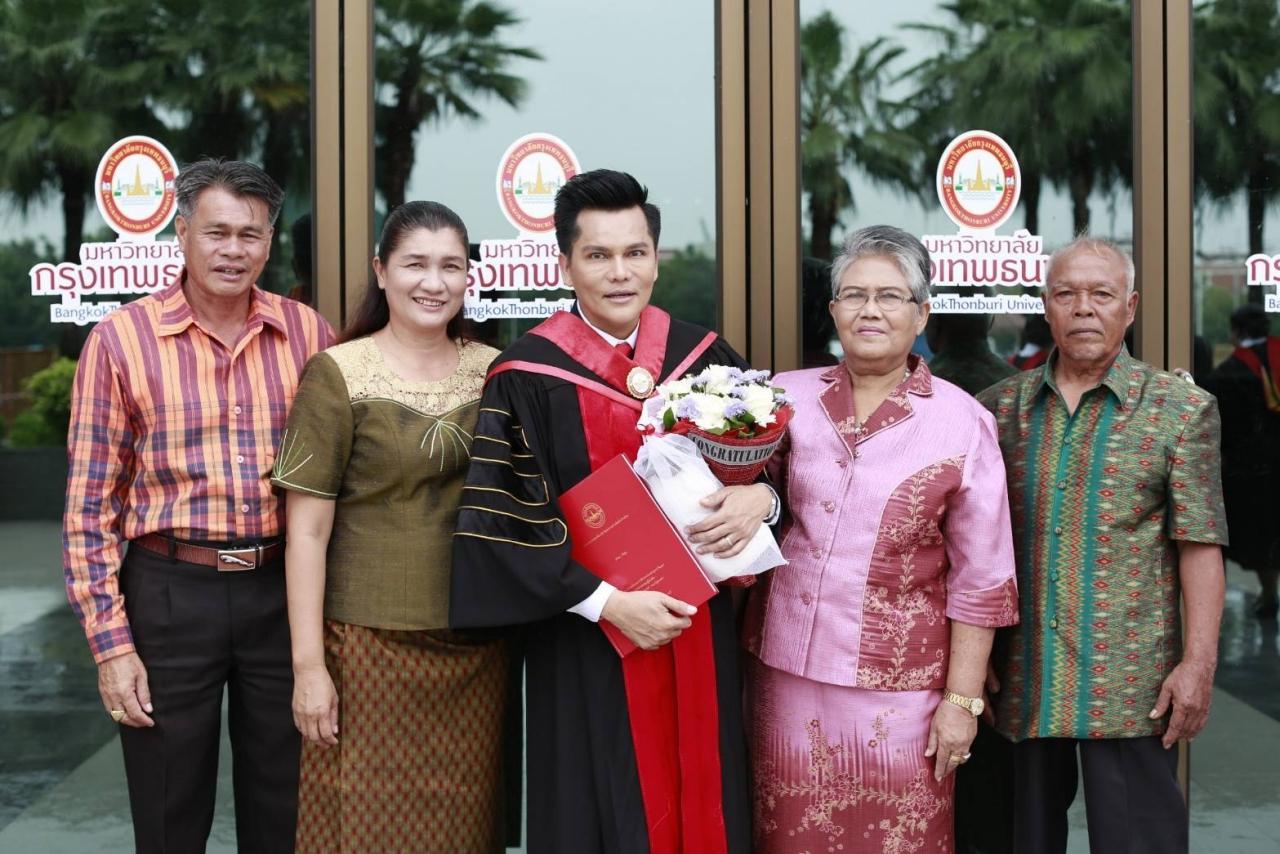 โดยได้รับเกียรติจาก ดร.ดวงฤทธิ์ เบ็ญจาธิกุล ชัยรุ่งเรือง รองอธิการบดีฝ่ายกิจการนักศึกษา มหาวิทยาลัยกรุงเทพธนบุรี, รศ.ดร.กมลพร กัลยาณมิตร ผู้ช่วยคณบดีฯ คณะรัฐศาสตร์ มหาวิทยาลัยกรุงเทพธนบุรี, สิทธิโชค คล้อยแสงอาทิตย์ อดีต สข.ตลิ่งชัน, พ่อแม่พี่น้องที่เคารพรัก และศิลปินดาราต่างหอบช่อดอกไม้และของขวัญไปแสดงความยินดีอย่างคับคั่ง ณ อาคารชาญชัย อเคเดียม มหาวิทยาลัยกรุงเทพธนบุรี.