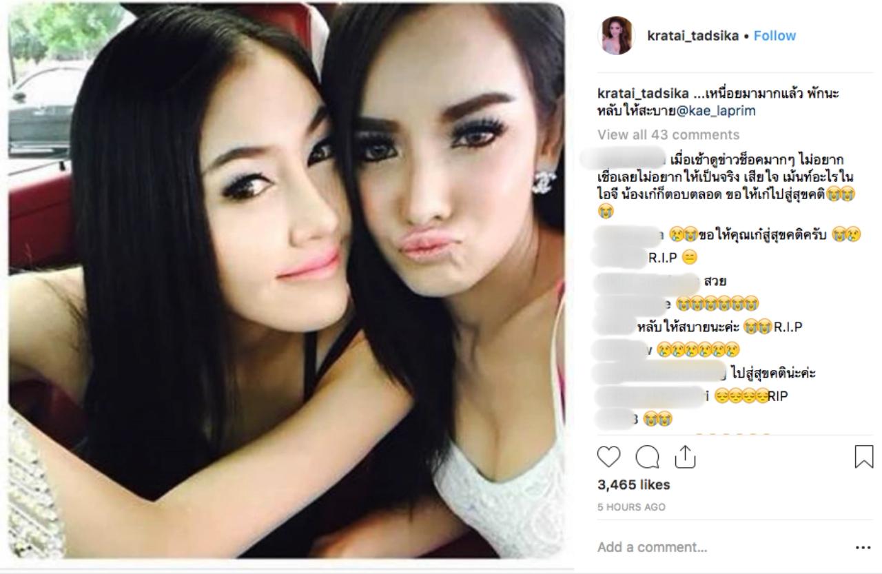 แต่เชอรู้ว่าเก๋เหนื่อย และสู้มาตลอด ครั้งสุดท้ายที่เราคุยกันปรึกษาเรื่องงาน เชอบอกเก๋แล้วว่าไม่ต้องเกรงใจ ไม่ว่าเรื่องอะไรก็โทรหาเชอได้ .... แต่ไม่เป็นไรนะเก๋ เชอขอให้เก๋ไปสู่สุขคติ มิตรภาพที่เคยมีต่อกันมันยังคงสวยงามเสมอนะ ด้วยรักและจะนึกถึงเก๋เสมอ จนกว่าจะพบกันใหม่ @kae_laprim #เวรกรรมมีจริง #ใครทำอะไรกับเธอไว้เขาจะได้รับผล"