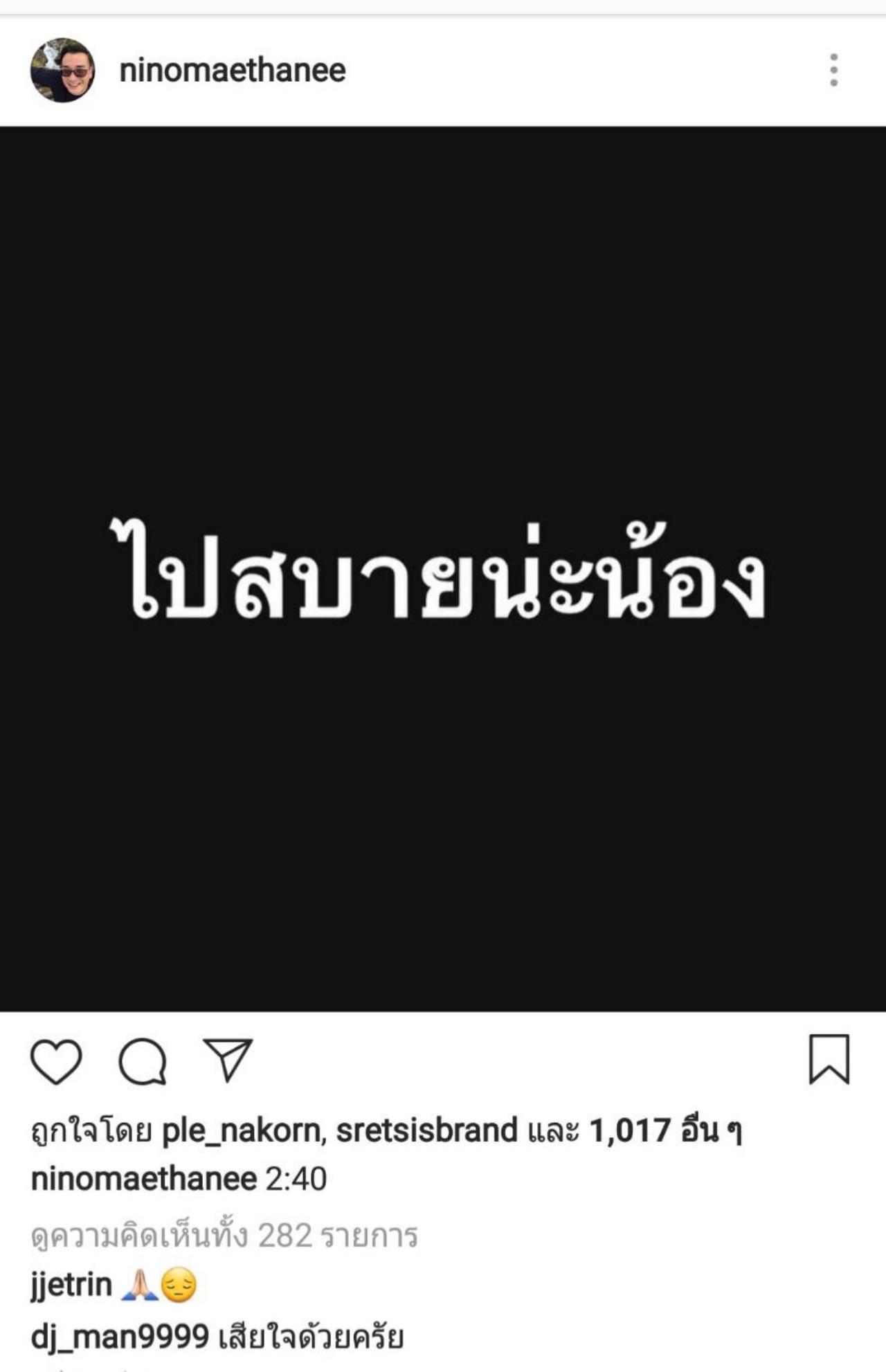 โดย นีโน่ โพสต์ประโยคสุดท้ายถึงน้องชายที่รัก โอ วรุฒ ว่า "ไปสบายนะน้อง".