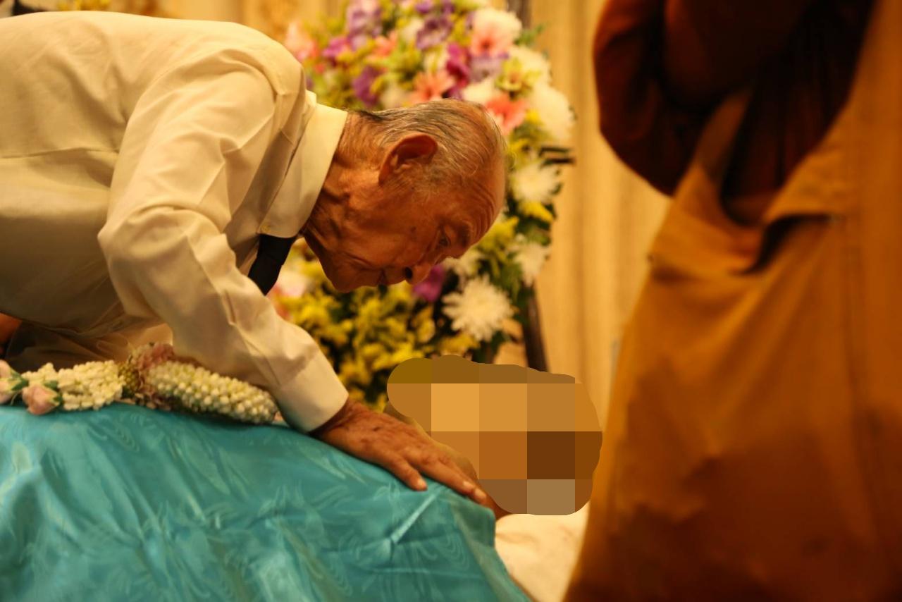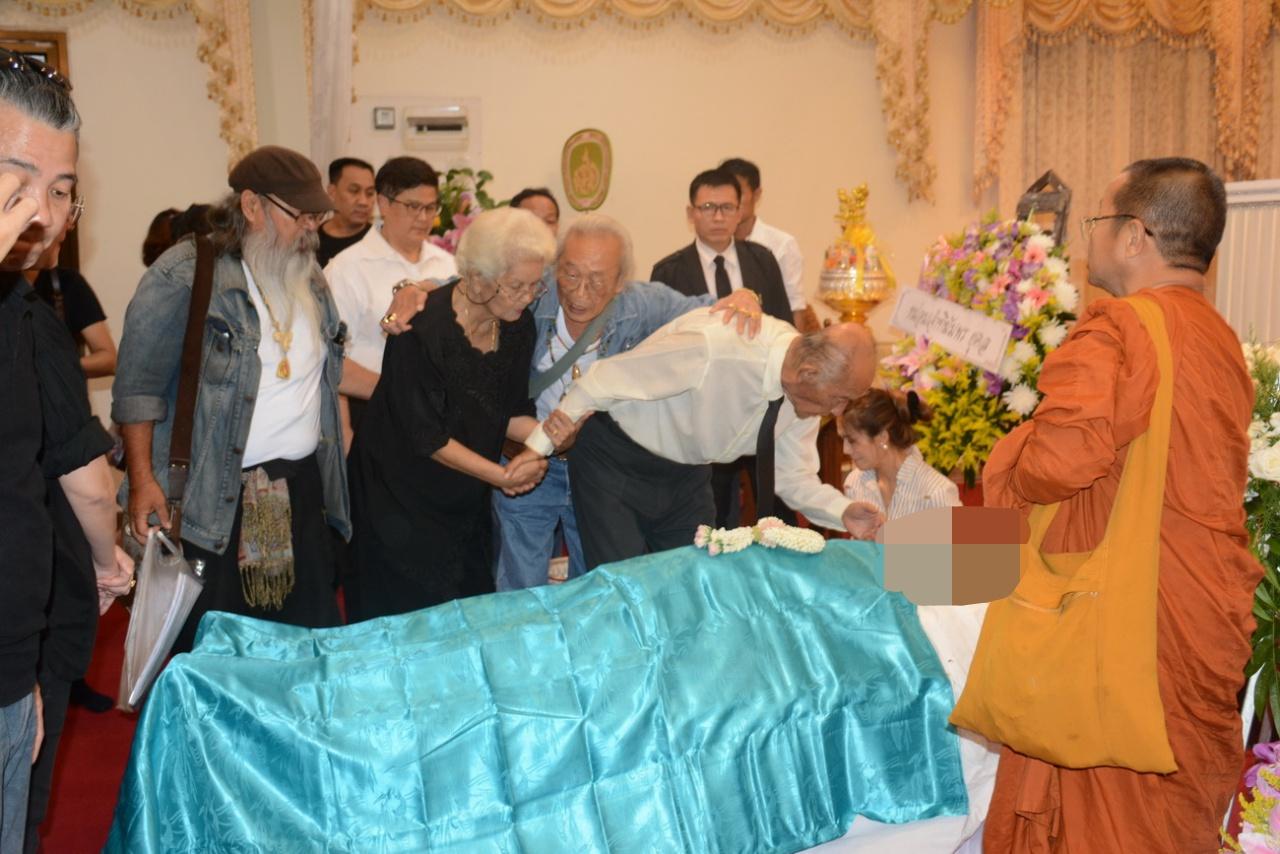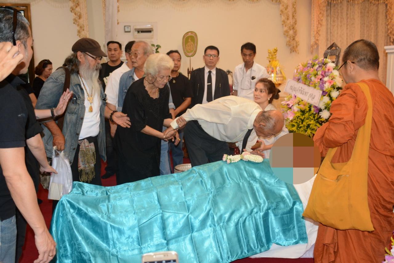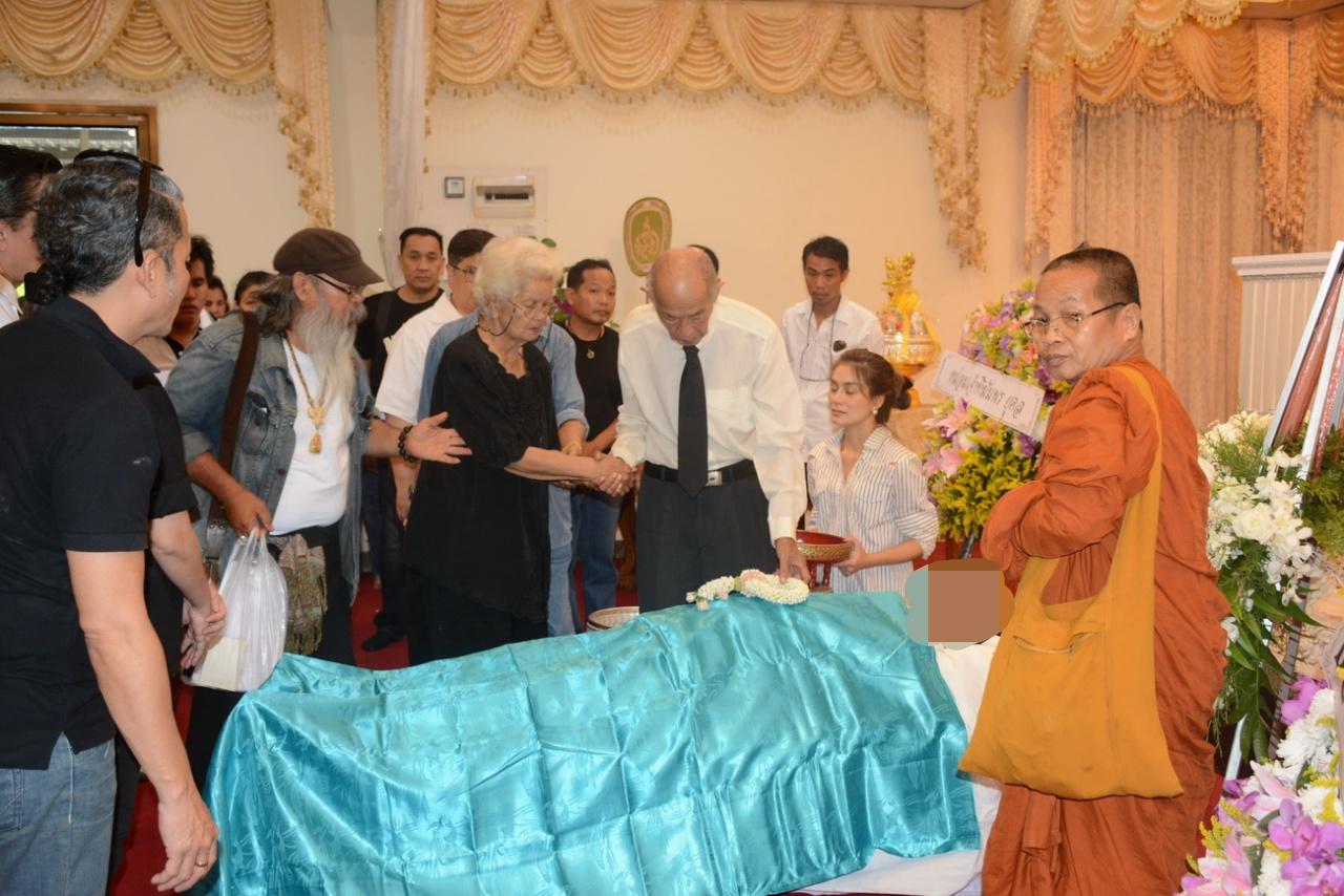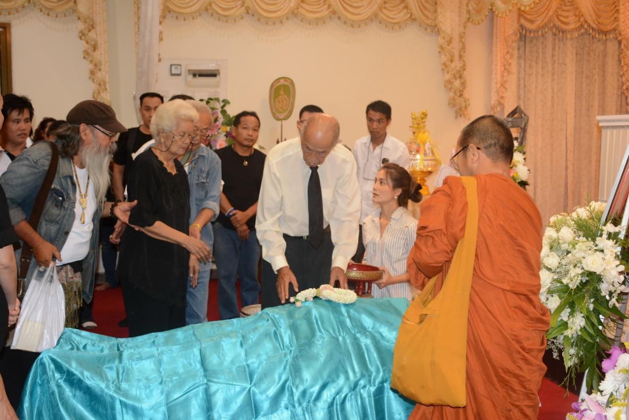 โดยมีเพื่อนสนิท นีโน่ และดาราศิลปินตลอดจนถึงคนในวงการบันเทิงจำนวนมากที่มาร่วมในพิธี พ่อแรม วรธรรม ได้เข้าไปก้มจูบใบหน้าลูกชายเป็นครั้งสุดท้าย จากนั้น พ่อแรม และ แม่ปุ๊ อรพินธ์ ได้วางดอกไม้บนร่างของลูกชาย ก่อนที่จะเริ่มทำพิธีรดน้ำศพ บรรยากาศเต็มไปด้วยความโศกเศร้า.