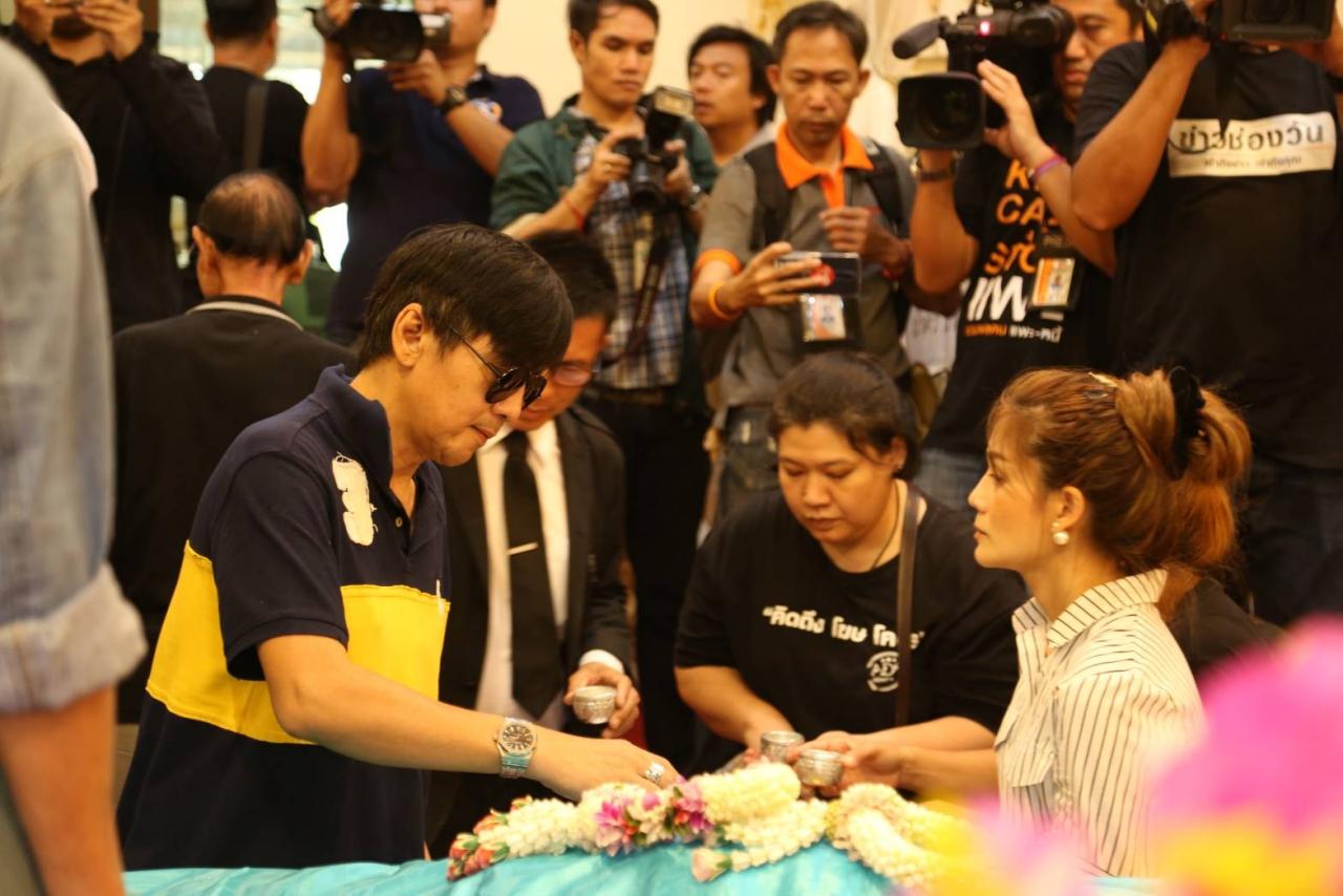 มีคุณพ่อ แรม วรธรรม คุณแม่ปุ๊ อรพินธ์ และญาติของอดีตพระเอกมาร่วมรดน้ำศพ รวมไปถึงพี่ชายคนสนิทที่สุดอย่าง นีโน่ เมทนี และเพื่อนดารา ศิลปิน ตลอดจนถึงคนในวงการบันเทิงจำนวนมากที่มาร่วมในพิธี