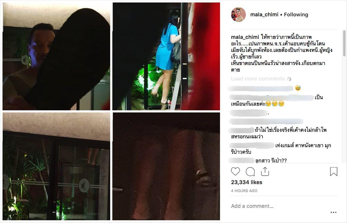 กลายเป็นเรื่องฮือฮาในโซเชียลฯ เมื่อ มาลา พงษ์สุวรรณ ภรรยาของตลกชื่อดัง เท่ง เถิดเทิง โพสต์ภาพแคปเจอร์ผู้ชายหน้าคล้ายเท่งและภาพผู้หญิงคนหนึ่งกำลังปีนบันได พร้อมด้วยข้อความว่า “ให้ทายว่าภาพนี้เป็นภาพอะไร.....เป็นภาพคน.จ.ร.เค้าแอบคบชู้กัน โดนเมียจับได้บุกพังห้อง เลยต้องปีนกำแพงหนี ผู้หญิงเร็ว ผู้ชายก็เลว เห็นเขาตอนปีนหนีแล้วน่าสงสารจัง เกือบตกมาตาย”