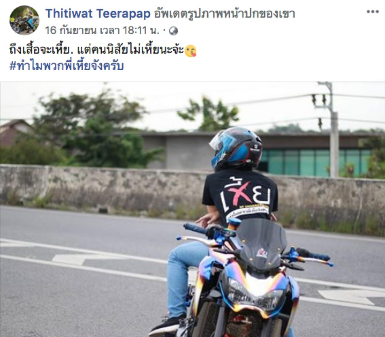 โพสต์สุดท้ายในเฟซบุ๊กของ ชาย ธีระภาพ คือ "ถึงเสื้อจะเหี้ย. แต่คนนิสัยไม่เหี้ยนะจ้ะ #ทำไมพวกพี่เหี้ยจังครับ" เป็น"
