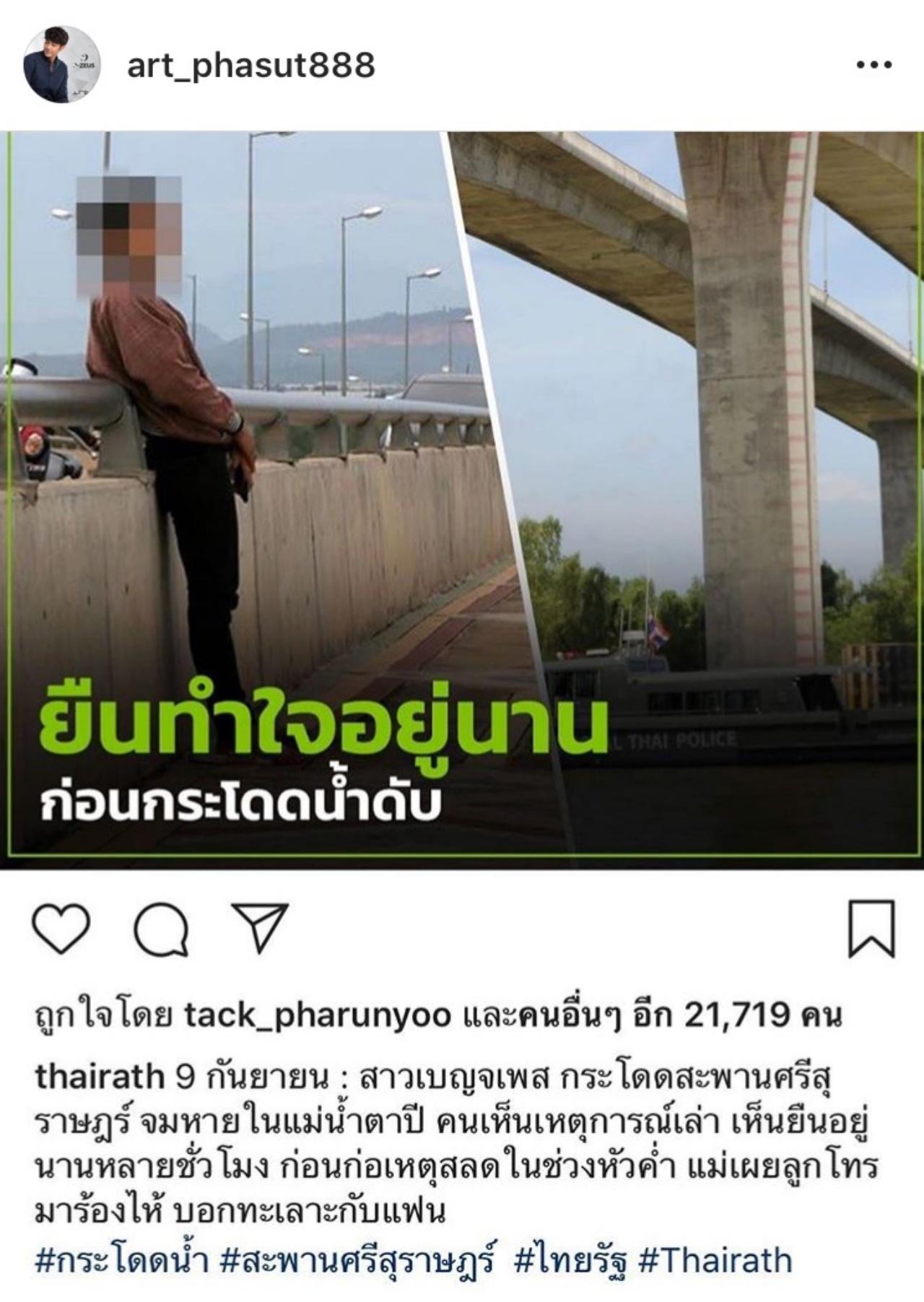 ........ใครรู้บ้างคับ ว่าข่าวนี้จริงหรือปลอม เพราะวันนั้นผมไปถ่าย รายการ @oneartart ที่สะพานนั้นพอดี และ รถ toyota fortuner สีฟ้าคือรถผมที่ใช้ในรายการตอนนั้น ดูคลิป คร่าวๆ คือใช่ว่าเป็นเค้าคนนี้ แน่นอน