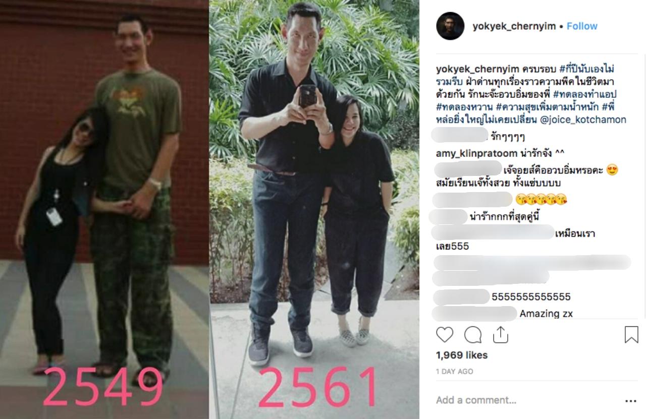และล่าสุดในอินสตาแกรมของตลกคนดัง ก็ได้โพสต์ภาพตนเองคู่กับแฟนสาว โดยเปรียบเทียบกับปี 2549 กับ ปี 2561 แม้จะผ่านมานานกว่า 12 ปี แต่ความรักของทั้งคู่ก็ไม่เคยเปลี่ยน ทั้งอุปสรรค เจอเรื่องพีคที่สุดของชีวิตมาด้วยกันตั้งมากมาย