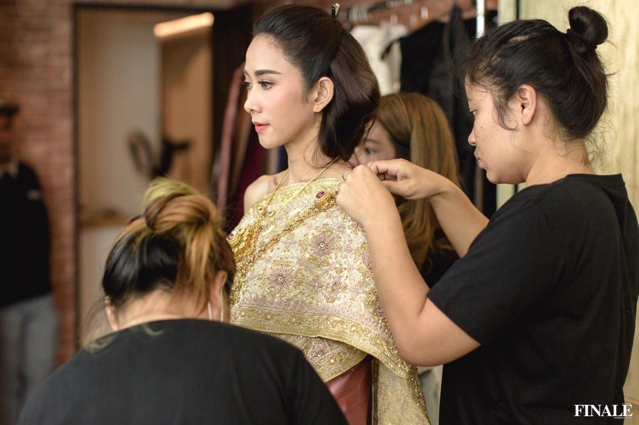 วันสำคัญชุดสำคัญในชีวิตรัก ต้องเลือกให้ดีๆ ยุ้ย-ธันญ์ เลือกให้ทาง ปลา สุดจิตร์ ดีไซเนอร์แห่งฟินาเล่เวดดิ้งสตูดิโอ Finale Wedding Studio ตัด 4 ชุด คือชุดแต่งงาน ชุดไทย ชุดแถลงข่าว ชุดอาฟเตอร์ปาร์ตี้ และยังให้ตัดชุดเพื่อนเจ้าบ่าวเพื่อนเจ้าสาวอีกกว่า 30 ท่าน รวมงบครั้งนี้ทะลุไปหลายล้านเลย