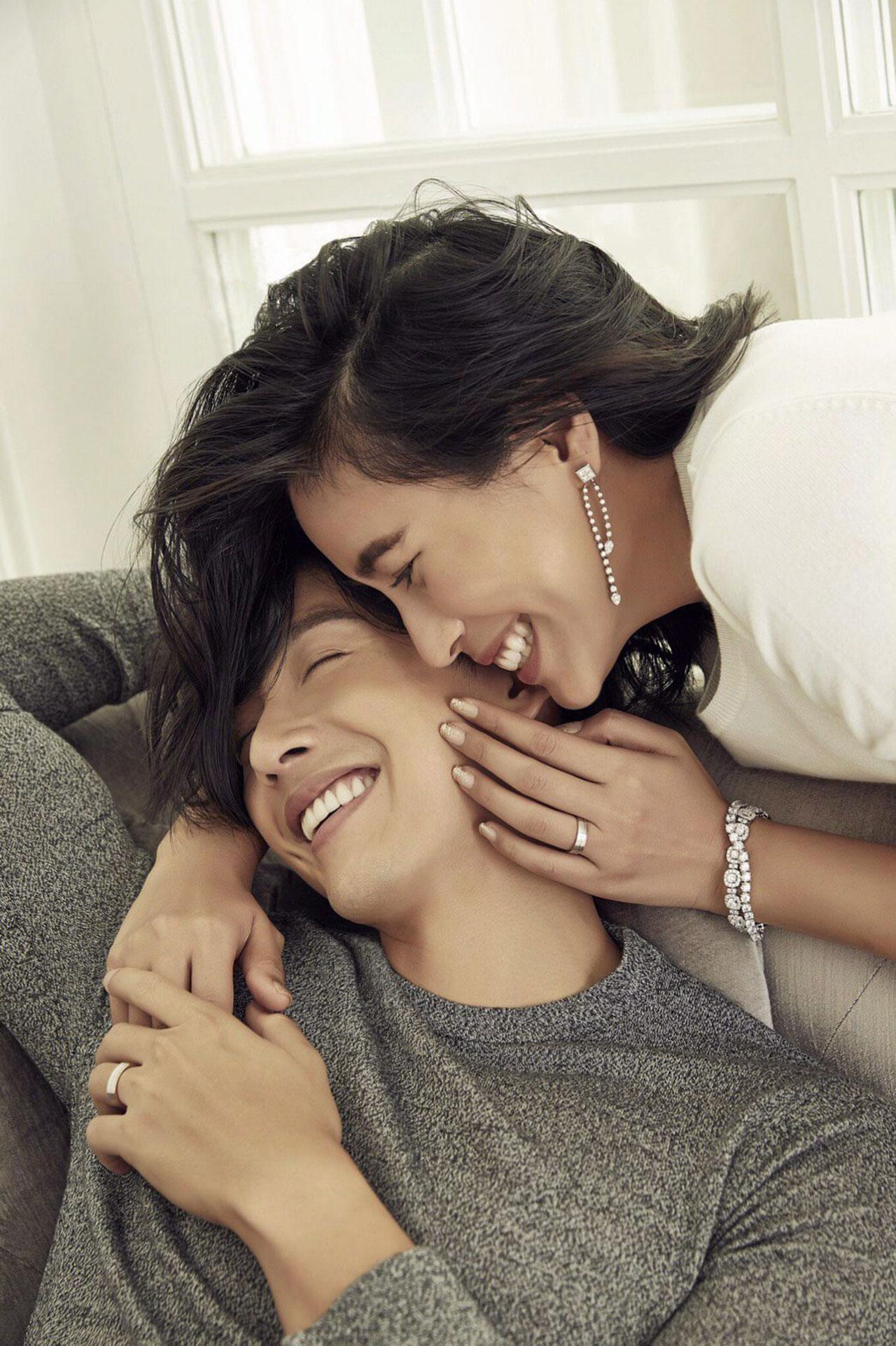 นี่เป็นแหวนแต่งงานที่ใช้จริงเลยใช่มั้ย? จุ๋ย “ใช่ค่ะ มีลักษณะคล้ายๆโซ่พันไว้แทนความหมายถึงรักที่มั่นคงของเรา เป็นโซ่คล้องใจ ไม่ ได้ออกแบบให้ดูเป็นผู้หญิงมากก็ลงตัวในความเป็นจุ๋ย ของพุฒก็จะเป็นแหวนผู้ชายเลย แบบก็จะเหมือนกันแต่ของผู้หญิงจะมีความวุ้งวิ้งเยอะกว่า ตอนจะให้เค้าออกแบบก็บอกว่าตัวตนของเราเป็นอย่างไร ทางจูบิลี่ก็ขนทั้งหมดในท้องพระคลังออกมาให้เราดูนำเสนอนั่นนี่ ก็ตกลงโอเคที่แนวนี้ เพราะจุ๋ยอยากจะใส่ได้ในทุกวัน”