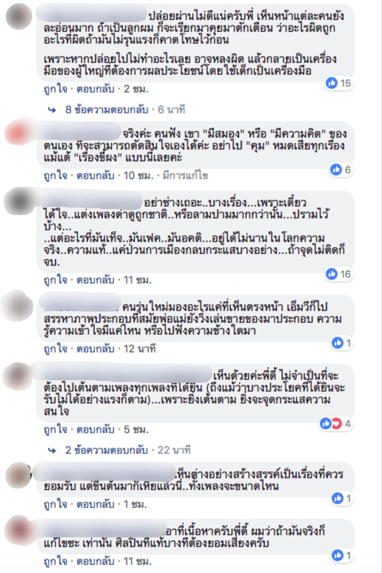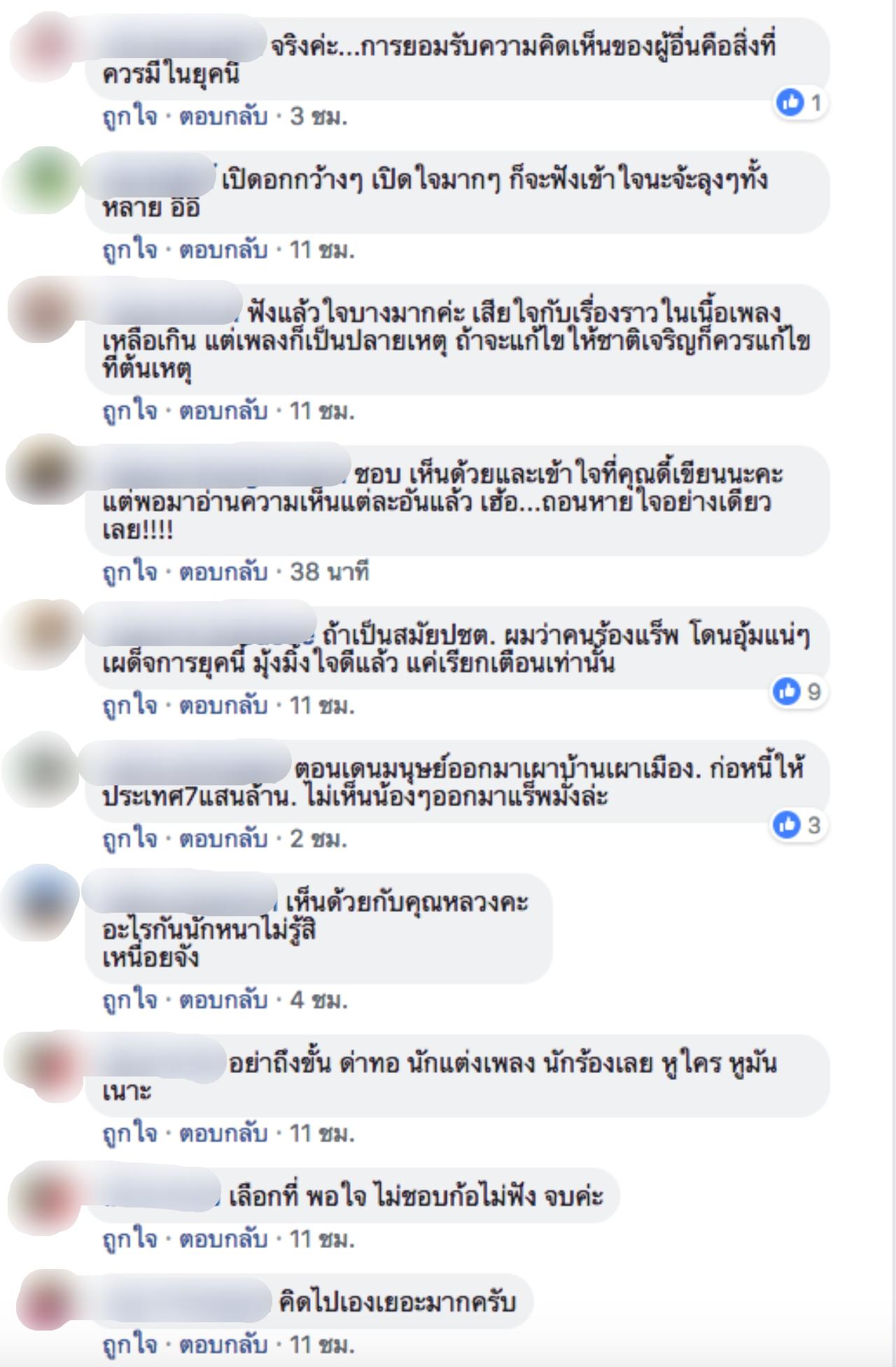 "น่า...ไม่เป็นไรน่า จะเพลงแร็ปเพลงหมอลำ ยุคนี้ เดี๋ยวก็มา เดี๋ยวก็ไป.. คนชอบก็ชม คนเกลียดก็ด่า แต่เพลงแค่นี้ทำลายชาติไม่ได้ดอกจ้ะ" ซึ่งก็มีคนที่ติดตามเข้ามาแสดงความคิดเห็นกันเป็นจำนวนมาก...