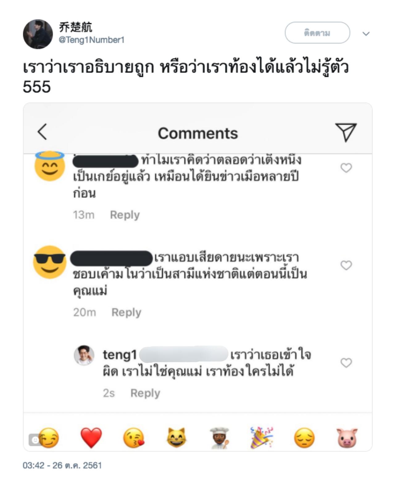 แต่ก็ยังมีคนส่วนหนึ่งที่ไม่เข้าใจ อีกทั้งยังมองว่า เมื่อ เต็งหนึ่ง เปิดตัวว่าเป็นเกย์แบบนี้ ต่อไปจะสาวขึ้น และจะต้องเป็นขุ่นแม่ หลังจากที่ถูกเรียกว่า สามีแห่งชาติมาก่อน โดย เต็งหนึ่ง ก็ได้ตอบกลับข้อความนั้นว่า "เราว่าเธอเข้าใจผิด เราไม่ใช่คุณแม่ เราท้องใครไม่ได้"