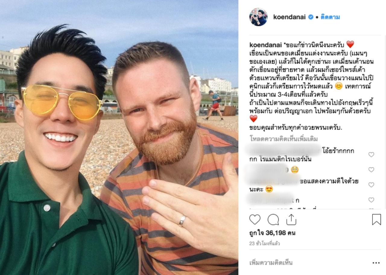 เหตุการณ์นี้ประมาณ 3-4 เดือนที่แล้วครับ ถ้าเป็นไปตามแพลนก็จะเดินทางไปอังกฤษเร็วๆ นี้ พร้อมกับต่อปริญญาเอกไปพร้อมๆ กันด้วยครับ ขอบคุณสำหรับทุกคำอวยพรนะครับ" ซึ่งหลังจากที่หนุ่มเขื่อนแก้ข่าวผ่านอินสตาแกรมของตัวเอง ก็มีแฟนๆ เข้ามาแสดงความยินดีและร่วมอวยพรให้กับทั้งคู่อีกครั้ง