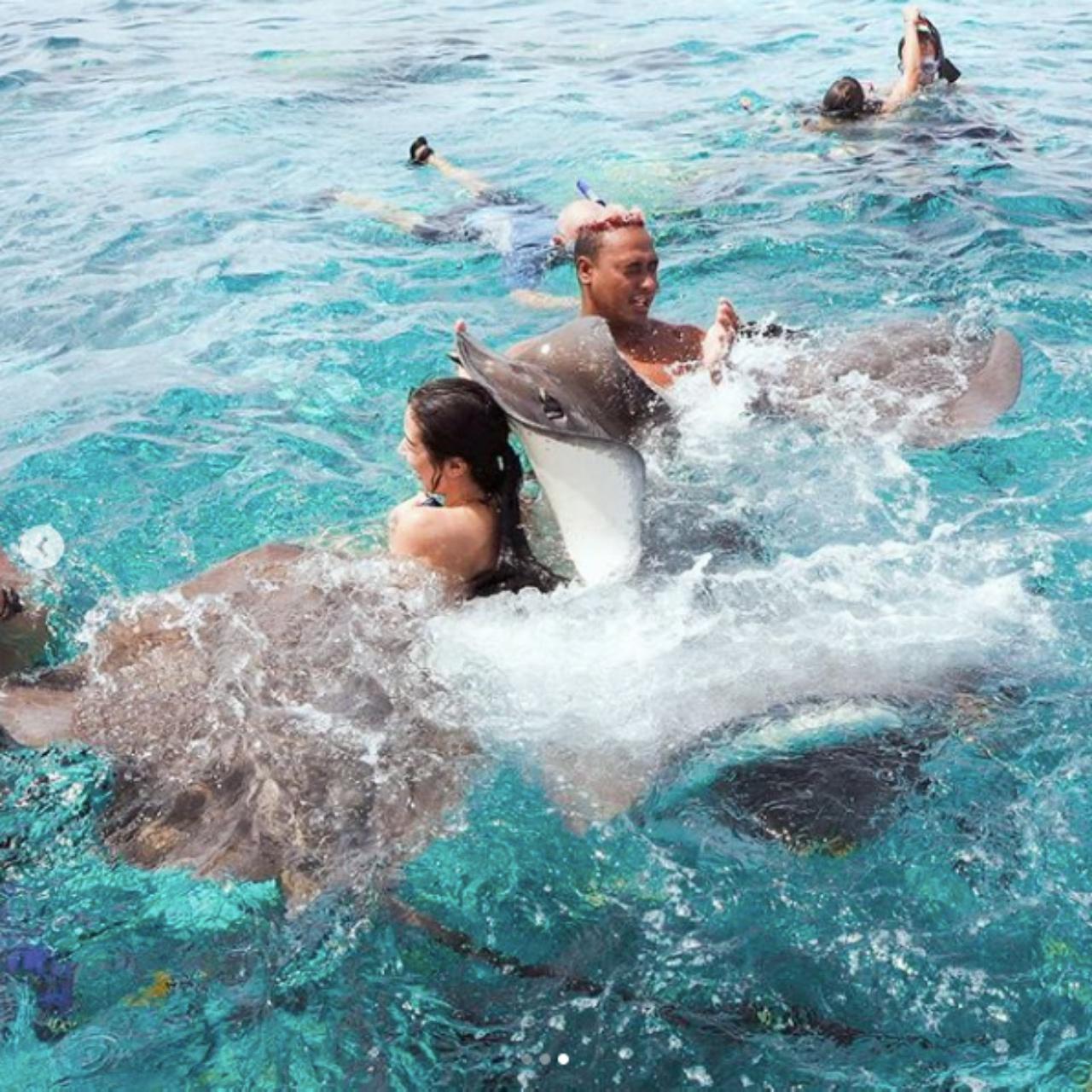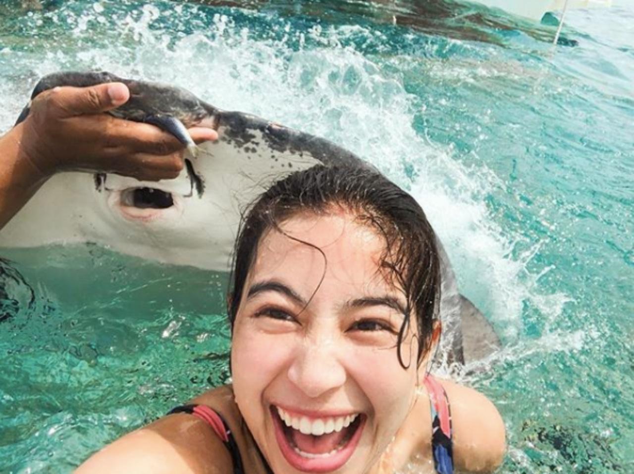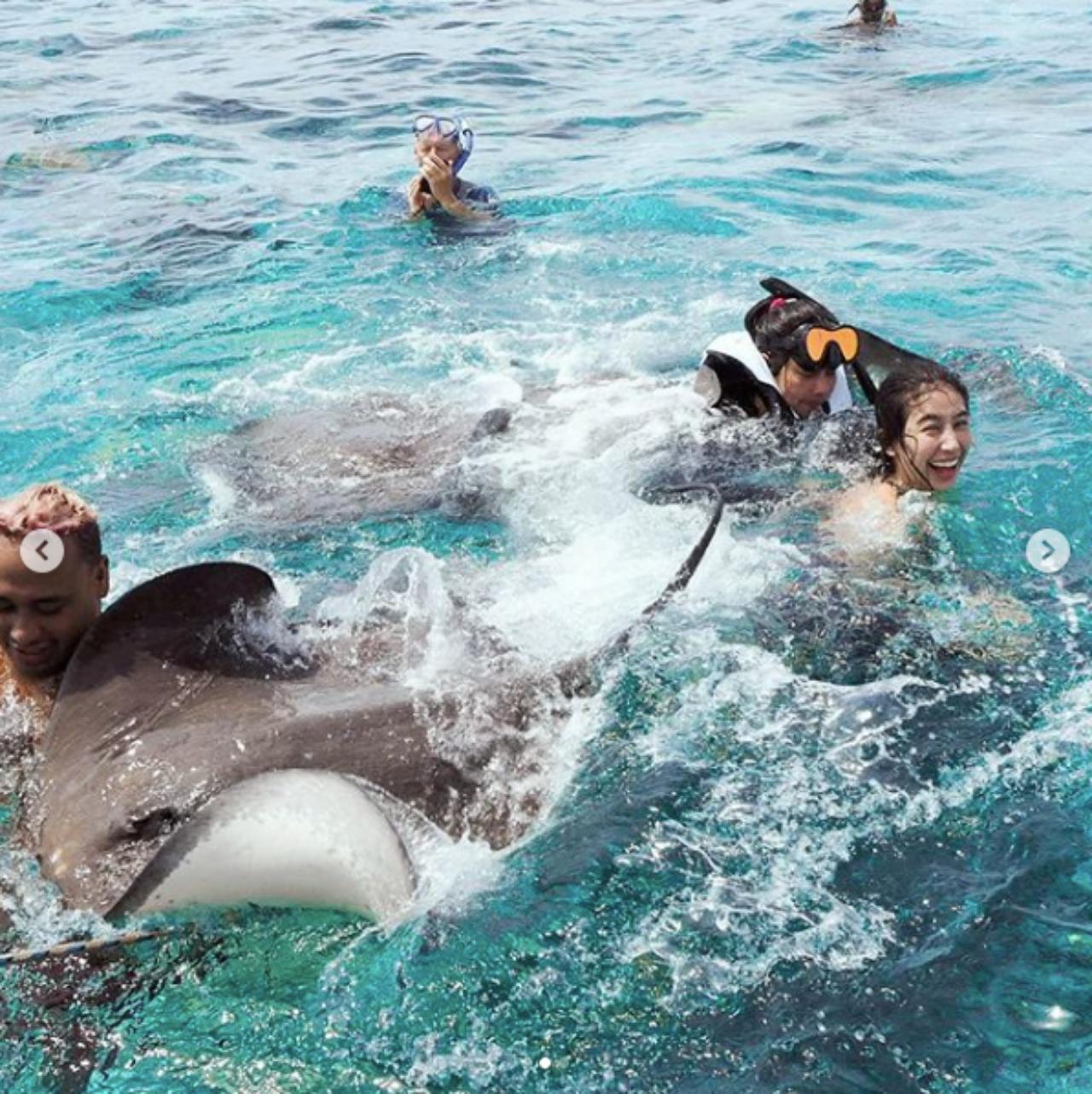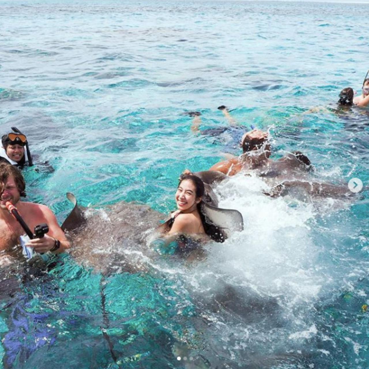 โดย มิ้นต์ ได้โพสต์ภาพให้ใครๆ อิจฉาเมื่อได้ว่ายน้ำกับปลากระเบนเป็นฝูงอย่างเริงร่า ในน้ำทะเลสีฟ้าครามสวยใส