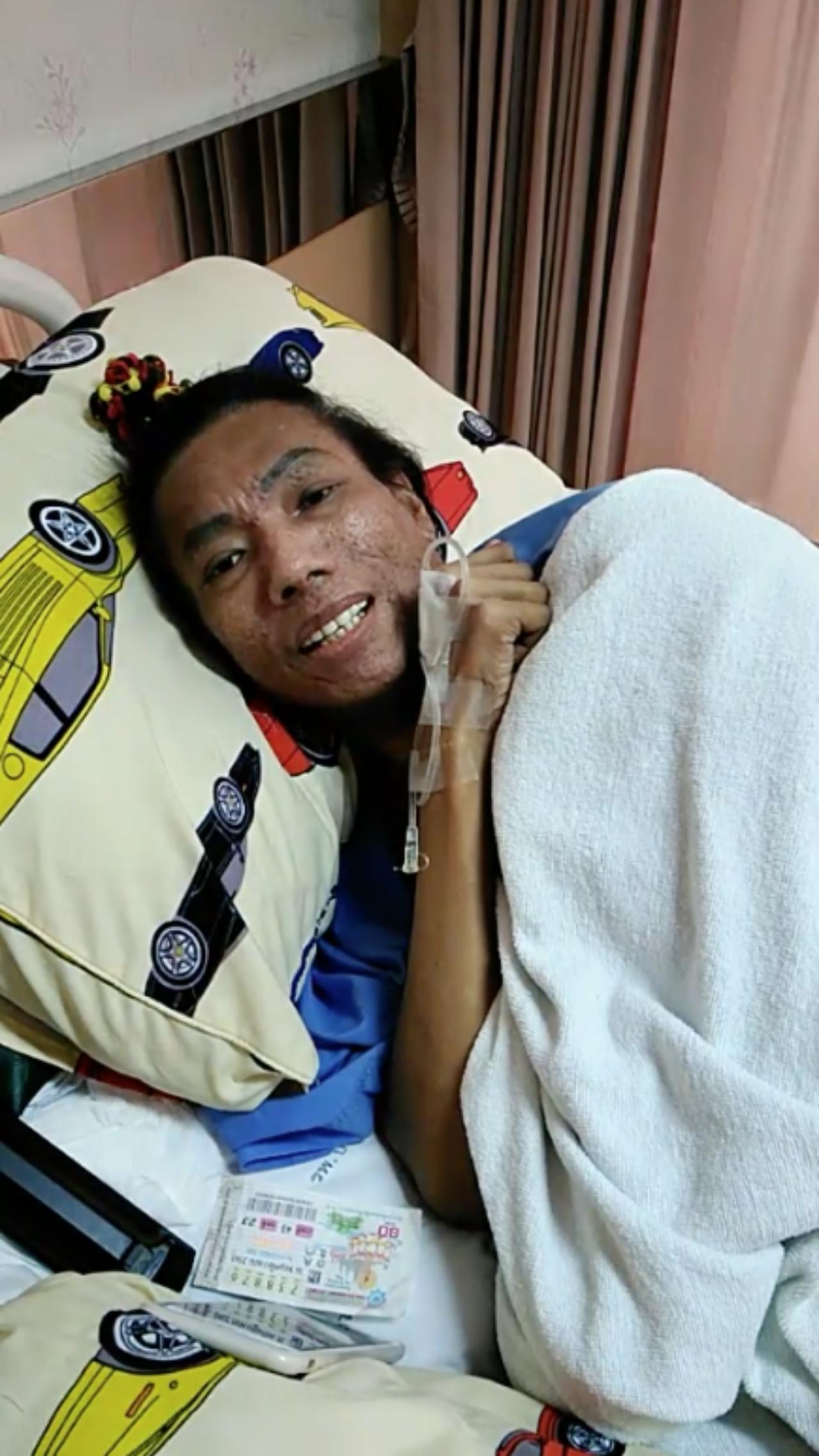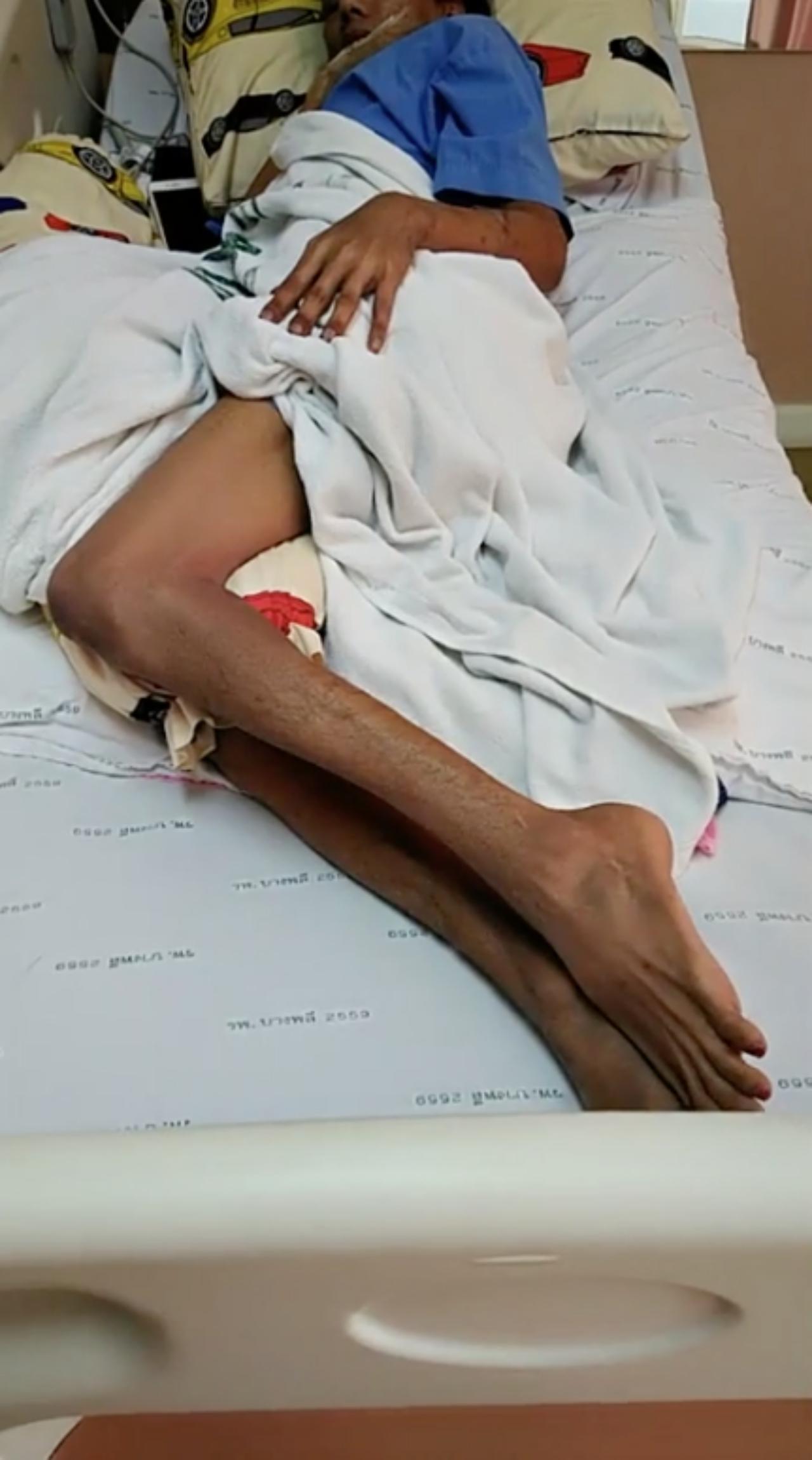 ตอนนี้ขาเล็กหมดแล้ว มันเมื่อย ทรมาน จะพลิกตัวก็ไม่ได้ เพราะเจ็บแผล ยิ่งตอนให้คีโม มันไปทำลายเนื้อร้าย เหม็นมาก ผมก็ร่วง อีกไม่นานคงหมด ตอนนี้ก็หมดค่ารักษาไปหลายล้านแล้ว ตอนนี้อยากกลับไปทำงานแล้ว