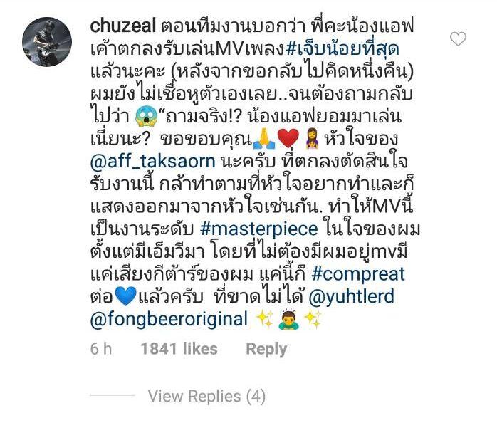 ขอบคุณ "พี่ฟองเบียร์" คนแต่งเพลงนี้ที่ให้เกียรติแอฟค่ะ เวลาพี่พูดถึงแอฟทำให้มีกำลังใจที่มีคนเห็นคุณค่าที่แท้จริง