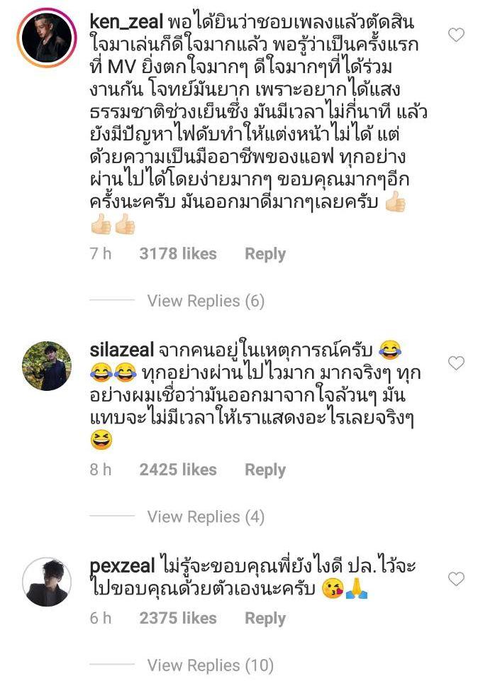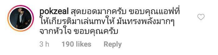 งานนี้นอกจาก 5 หนุ่มวงซีล เป๊กซ์, ชุ, ศิลา, ป๊อก, เคน จะเข้ามาคอมเมนต์ขอบคุณแอฟและเล่าถึงการทำงานในเพลงนี้แล้ว ยังมีคนบันเทิงอีกหลายคน อาทิ เจนี่ เทียนโพธิ์สุวรรณ, หนุ่ม กรรชัย, ไอซ์ ศรัณยู ฯลฯ เข้ามาให้กำลังใจและชื่นชมมิวสิกวิดีโอเพลงนี้ด้วย.