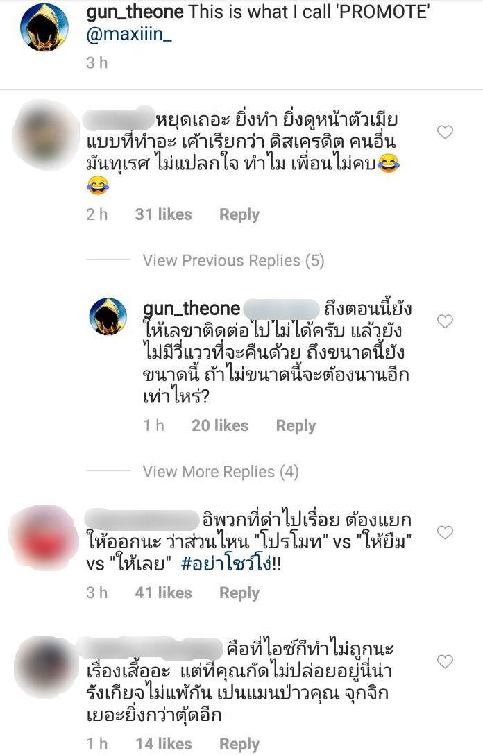 และหลังจากที่สาวไอซ์ได้โพสต์ไอจีสตอรี่ดังกล่าว กรรณได้โพสต์รวมภาพเสื้อผ้าแบรนด์ยี่ห้อหนึ่งที่ตนเองทำเล่นๆ และส่งให้สาวไอซ์ พร้อมทั้งเขียนข้อความว่า “เสื้อที่ให้โปรโมทเป็นเสื้อแบบนี้ครับ แบรนด์ต่างประเทศ แต่ผมเอามาทำเล่นๆ เลิกทำแล้วครับ” ก่อนจะโพสต์คลิปวิดีโอรวมภาพเสื้อผ้าแบรนด์ดังกล่าวและเขียนข้อความว่า “This is what I call 'PROMOTE’” แถมบอกว่าจนถึงตอนนี้ให้เลขาติดต่อไปไม่ได้และยังไม่ได้เสื้อคืนด้วย