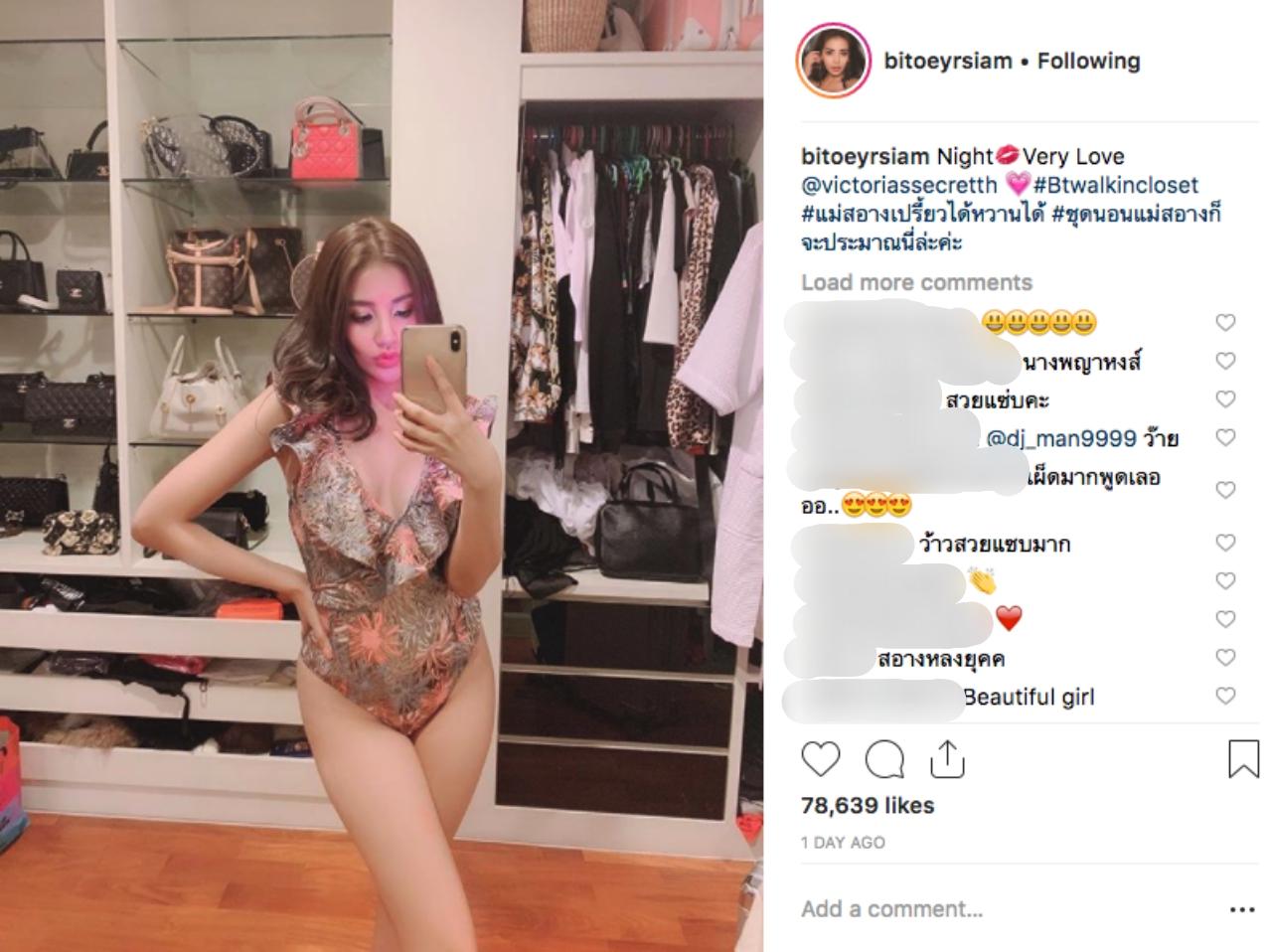 โดยล่าสุด สาวใบเตย ก็ได้โพสต์รูปชุดนอนที่ตัวเองใส่ ซึ่งเป็นภาพถ่ายจากห้องแต่งตัวของตัวเอง ซึ่งชุดนี้เป็นชุดนอนบอดี้สูทแหวกอก ขาเว้าสุดเซ็กซี่ จากแบรนด์ Victoria's Secret พร้อมเขียนแคปชั่นว่า "Night Very love @victoriassecretth #btwalkincloset #แม่สอางเปรี้ยวได้หวานได้ #ชุดนอนแม่สอางก็จะประมาณนี่ละค่ะ"
