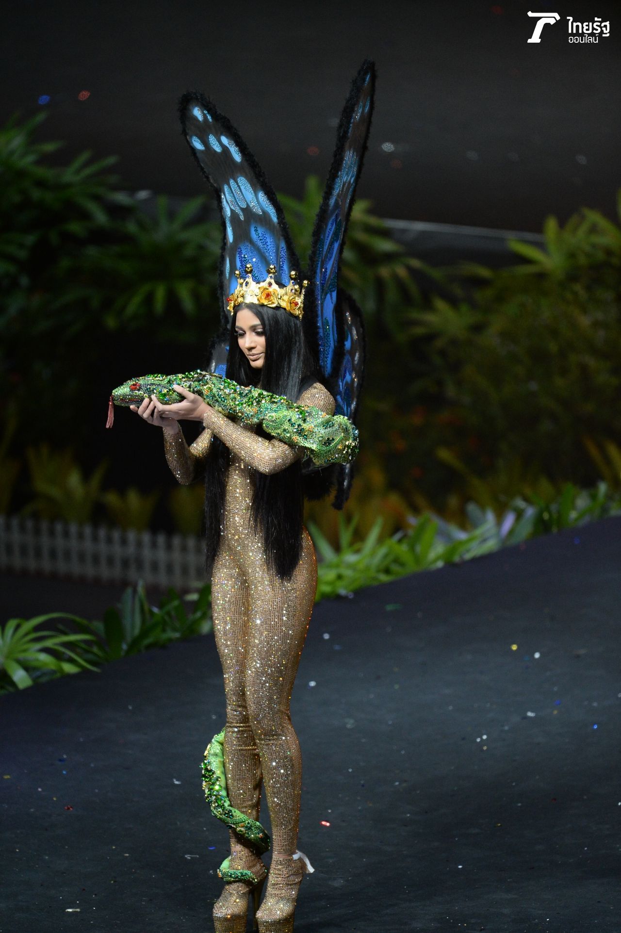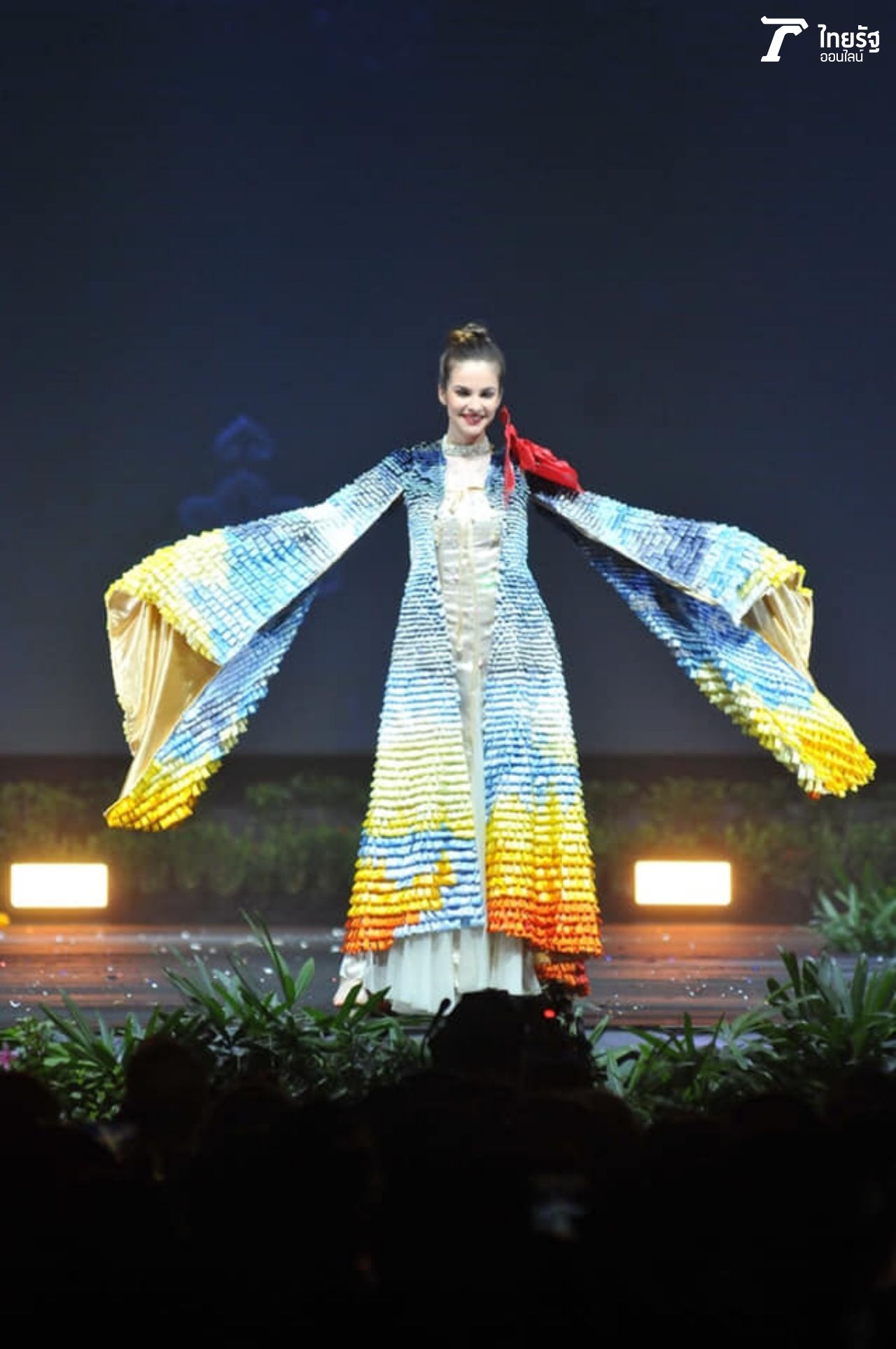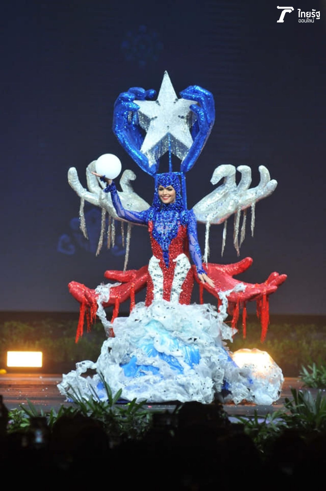 มิสเปรู เป็นนางเงือกสุดสวย ประโปรงนี้หมุนๆ รอบทิศทางได้ด้วย ส่วนใบไม้ด้านหลังก็ดึงๆ ขึ้นลงได้อีก