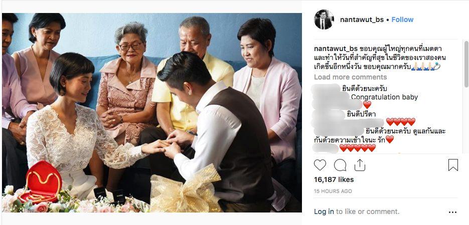 ด้านหนุ่มวุฒิได้โพสต์ภาพกำลังสวมแหวนหมั้นให้สายป่าน และเขียนข้อความว่า “ขอบคุณผู้ใหญ่ทุกคนที่เมตตาและทำให้วันที่สำคัญที่สุขในชีวิตของเราสองคนเกิดขึ้นอีกหนึ่งวัน ขอบคุณมากครับ” โดยมีแฟนๆ ของทั้งคู่เข้ามาคอมเมนต์แสดงความยินดีเป็นจำนวนมาก.