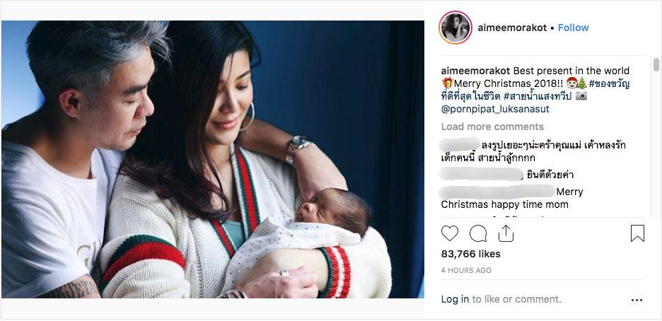 โดย เอมมี่ ได้โพสต์ภาพครอบครัวพ่อแม่ลูก พร้อมด้วยข้อความว่า “Best present in the world Merry Christmas 2018!! #ของขวัญที่ดีที่สุดในชีวิต #สายน้ำแสงทวีป” และมีแฟนๆ เข้ามาคอมเมนต์แสดงความยินดีเป็นจำนวนมาก พร้อมทั้งอวยพรให้น้องสายน้ำแข็งแรง บ้างก็บอกว่าอยากให้เอมมี่ลงภาพลูกชายเยอะๆ เพราะอยากเห็นความน่ารักด้วย.