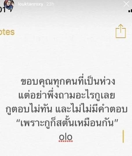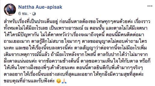 จากข้อความข้างต้นนี้ ตาลขอความเห็นใจให้กับตาล หรือก็ให้เห็นใจทางฝั่งของพี่ๆเค้าด้วยนะคะ ตอนนี้ตาลยินดีกับพี่เค้ามากๆ จริงๆ ตาลอยากให้เรื่องนี้จบอย่างสงบที่สุดและอยากให้ทุกฝั่งมีความสุขที่สุดค่ะ ขอบคุณที่อ่านและรับฟังค่ะ”.