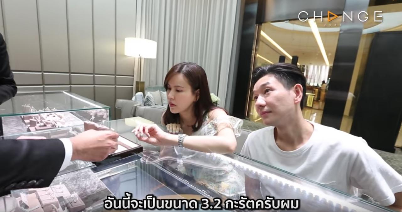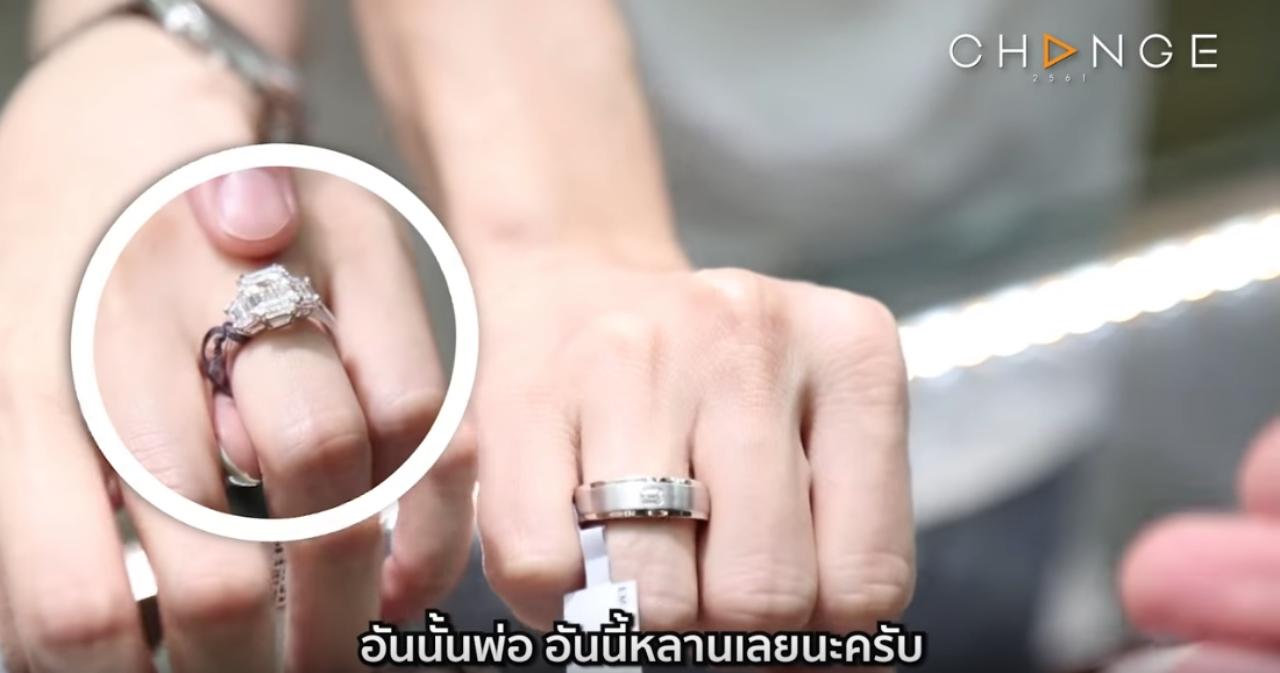 งานนี้ทั้งคู่เลยควงกันไปเลือกซื้อแหวนแต่งงาน โดยทั้งคู่บอกว่า แหวนที่เลือก ไม่ได้เน้นขนาด เน้นเรื่องชอบกับความสวยงาม ซึ่งว่าที่เจ้าสาวตื่นเต้นกับการเลือกแหวนครั้งเดียวในชีวิต และยังบอกอีกว่าไม่ได้เน้นที่ความใหญ่ของเพชร แต่เอาที่เหมาะสมกับตัวเอง