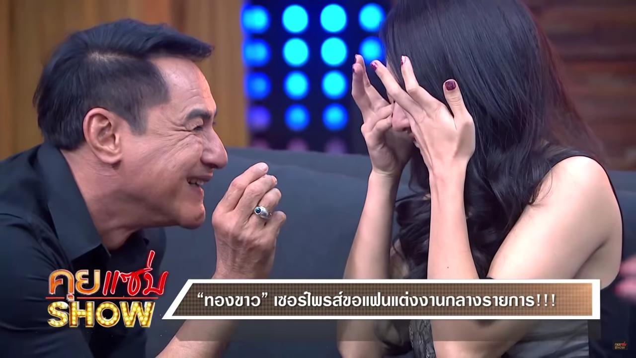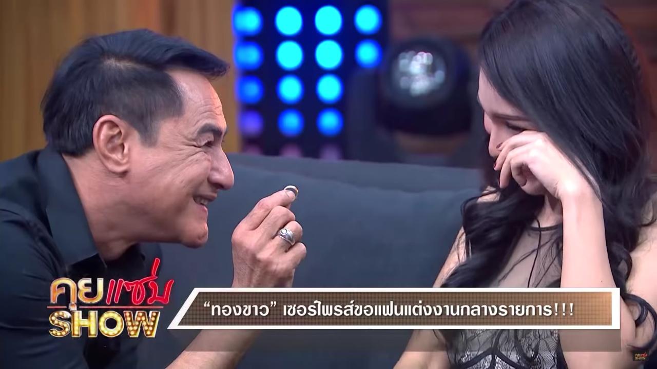 และหลังจากนั้น ทองขาว ได้บอกความในใจกับน้องมิลว่า อยากขอบคุณที่มีวันนี้ แล้วก็วันที่ผ่านมาน้องมิลเติมเต็มความสุขให้เรา ทำให้เรามีเสียงหัวเราะ มีรอยยิ้ม อยากขอให้น้องมิลอยู่กับผมแบบนี้ตลอดไป ก่อนจะทำเซอร์ไพรส์ขอน้องมิลแต่งงานกลางรายการ ทำเอาแฟนๆ ที่ดูไลฟ์สดต่างส่งข้อความมาแสดงความยินดีกับทั้งคู่กันยกใหญ่.