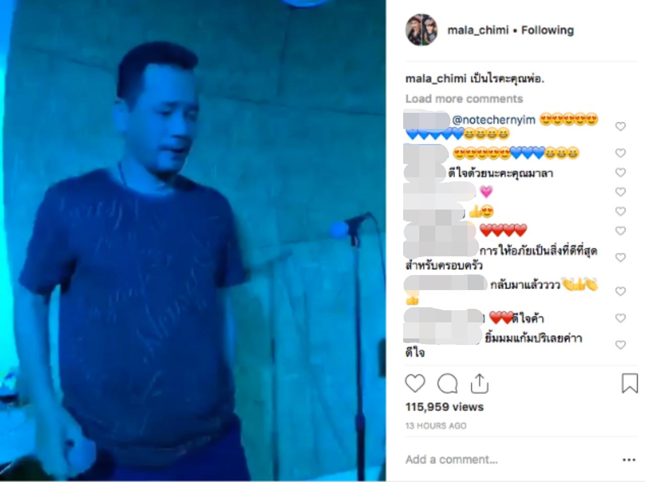 นับเป็นโมเมนต์ที่ดีต่อไปของแฟนคลับครอบครัว เท่ง เถิดเทิง เป็นอย่างมาก หลังจากที่ตามเชียร์ตามคอมเมนต์ให้ทั้ง เท่ง และ มาลา ภรรยา กลับมาอยู่ด้วยกันและรักกันเหมือนเดิม และล่าสุดในอินสตาแกรมของ มาลา ก็ได้โพสต์คลิปที่ เท่ง กำลังยืนร้องเพลงอยู่บนเวที พร้อมกับเขียนแคปชั่นว่า "เป็นไรคะคุณพ่อ"