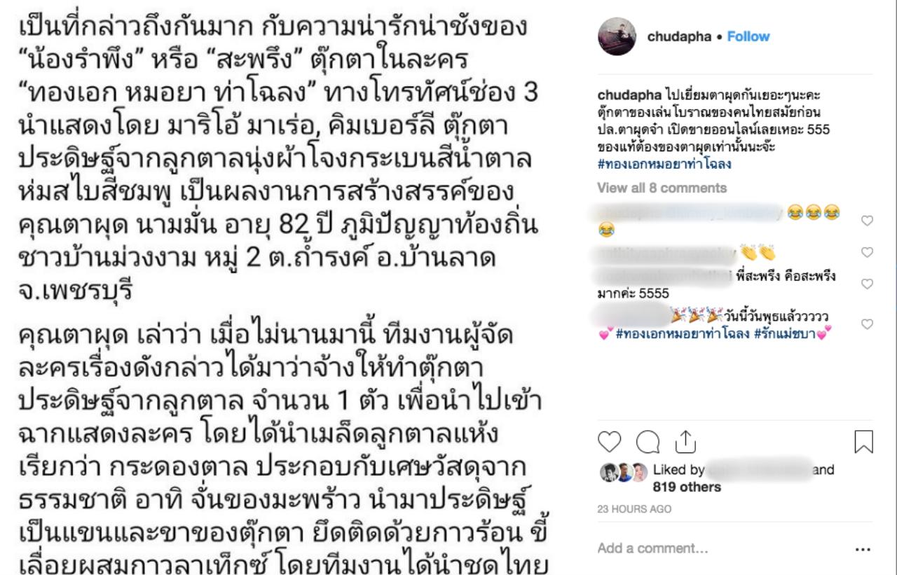 ล่าสุดทางเพจเฟซบุ๊ก เพชรภูมิ ฮอตนิวส์ ได้ออกมาเปิดเผยเรื่องราวที่มาของตุ๊กตาน้องรำพึง หรือน้องสะพรึง ว่า เป็นตุ๊กตาลูกตาลที่ประดิษฐ์จากความสร้างสรรค์ของ คุณตาผุด นามมั่น อายุ 82 ปี เป็นภูมิปัญญาท้องถิ่นของชาวม่วงงาม หมู่ 2 ต.ถ้ำรงค์ อ.บ้านลาด จ.เพชรบุรี ที่ทางทีมงานละครได้ติดต่อว่าจ้างให้ทำขึ้นมา เพื่อละครเรื่องนี้โดยเฉพาะ