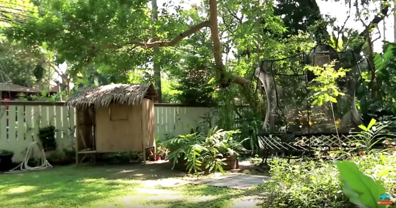 บ้านหลังนี้เป็นบ้านคุณพ่อคุณแม่สามี กลางวันจะเลี้ยงลูกที่บ้าน กลางคืนไปอยู่คอนโด เพราะสามีต้องการความเป็นส่วนตัวนิดนึง และที่บ้านจะมีรถโบราณอยู่หลายคัน เพราะคุณพ่อสามีและสามีชอบมาก เก็บสะสมเอาไว้ และบ้านก็เป็นบ้านเก่า แต่คุณแม่สามีได้ทำใหม่ มีเปลี่ยนบ่อปลาในบ้านให้เป็นห้องนั่งเล่น เอาไว้ให้เด็กๆ ได้เล่นกันตรงนี้