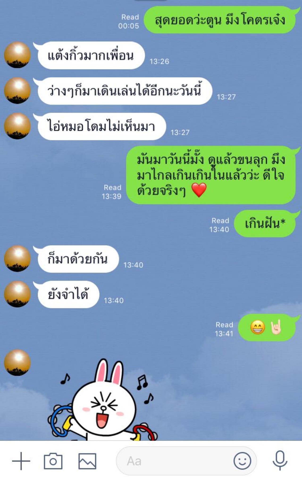 เภา : มันมาวันนี้มั๊ง ดูแล้วขนลุก มึงมาไกลเกินเกินฝันแล้วว่ะ ดีใจด้วยจริงๆ