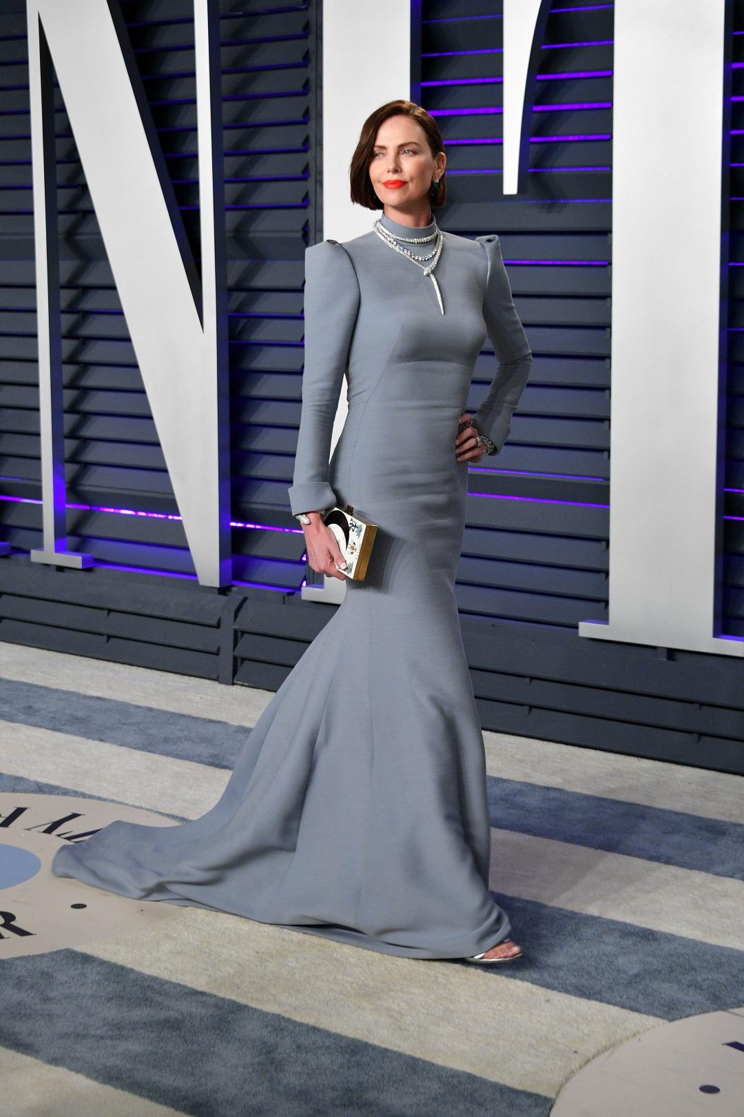 ปากแดงๆ จะไว้ใจได้มั้ย ชาร์ลีซ เธอรอน สวยนะ แต่ต้องหัก 5 คะแนน เพราะชุดนี้ เพิ่งใส่เดินพรมแดงออสการ์มาแล้ว น่าจะขี้เกียจเปลี่ยนชุดแล้ว