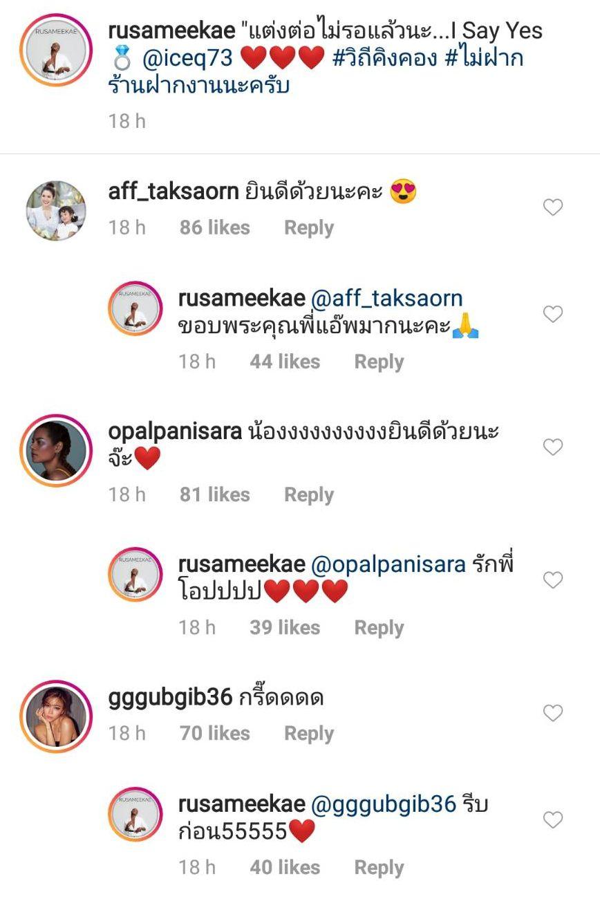 ล่าสุดดูเหมือนว่าความรักของทั้งคู่ถึงจุดลงตัวแล้ว เมื่อรัศมีแขโพสต์ภาพคู่กับแฟนหนุ่มพร้อมด้วยแคปชั่นสั้นๆ แต่ชัดเจนผ่านทางไอจีส่วนตัว “แต่งต่อไม่รอแล้วนะ...I Say Yes @iceq73 #วิถีคิงคอง #ไม่ฝากร้านฝากงานนะครับ” โดยมีแฟนๆ เข้ามาแสดงความยินดีเป็นจำนวนมาก