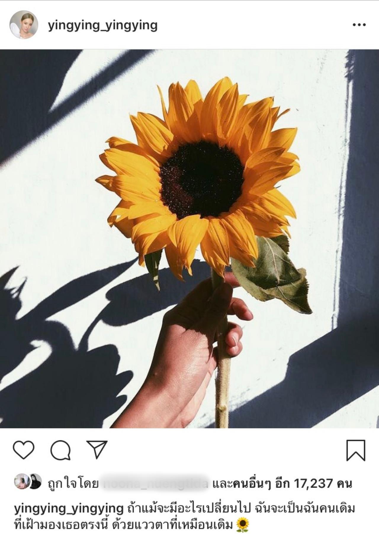 ทำเอาชาวโซเชียลสงสัยว่าการที่พี่ชายของตูมตามโพสต์ข้อความและรูปนี้จะพาดพิงถึงญิ๋งญิ๋งหรือไม่ เพราะสาวญิ๋งญิ๋งก็โพสต์รูปดอกทานตะวัน และข้อความว่า ถ้าแม้จะมีอะไรเปลี่ยนไป ฉันจะเป็นฉันคนเดิม ที่เฝ้ามองเธอตรงนี้ ด้วยแววตาที่เหมือนเดิม”